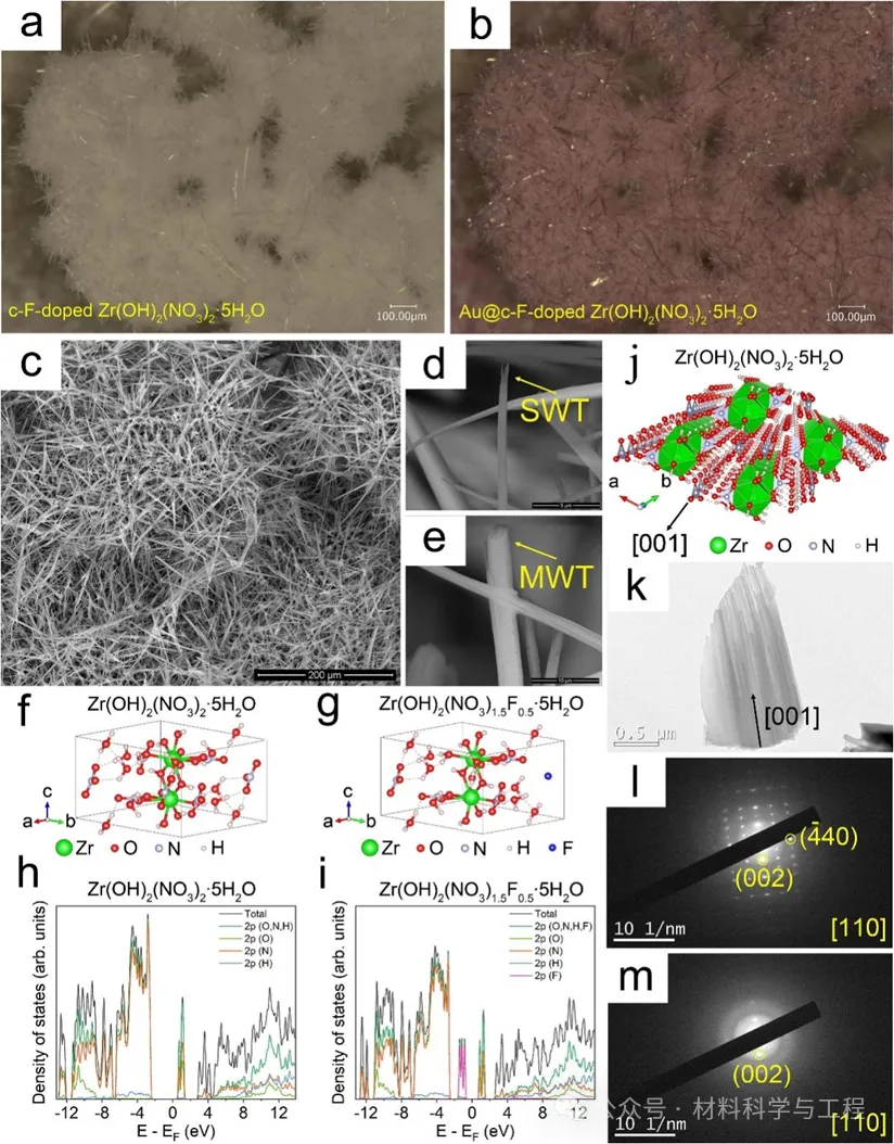 图1 Zr(OH)2(NO3)2·5H2O锆氢氧化物硝酸盐微纳米管的表征。 图2 Zr(OH)2(NO3)2·5H2O锆氢氧化物硝酸盐微纳米管表面金纳米颗粒的电子自转移。 图3 200KeV电子辐照下金纳米颗粒内BCC金的形成。 图4 BCC金的形成机制。