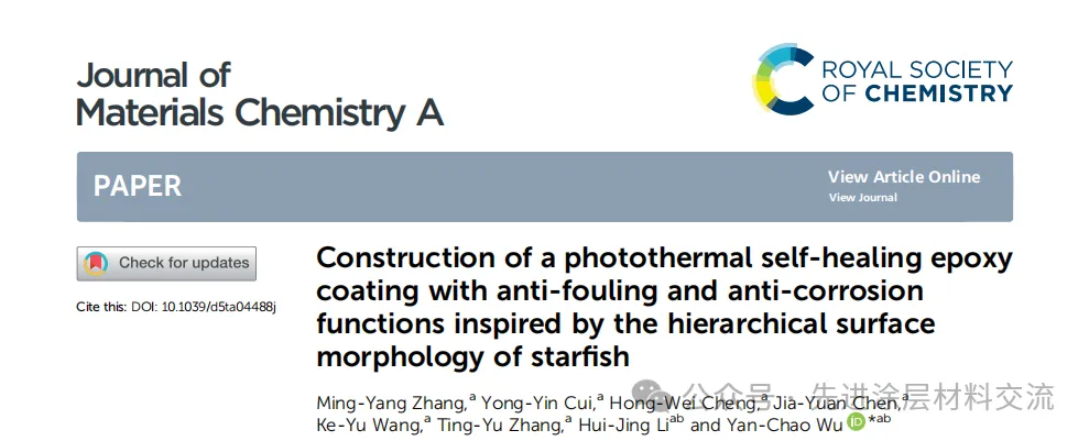 哈尔滨工业大学|JMCA|受海星分层表面形态启发,构建具有防污防腐蚀功能的光热自愈环氧涂层