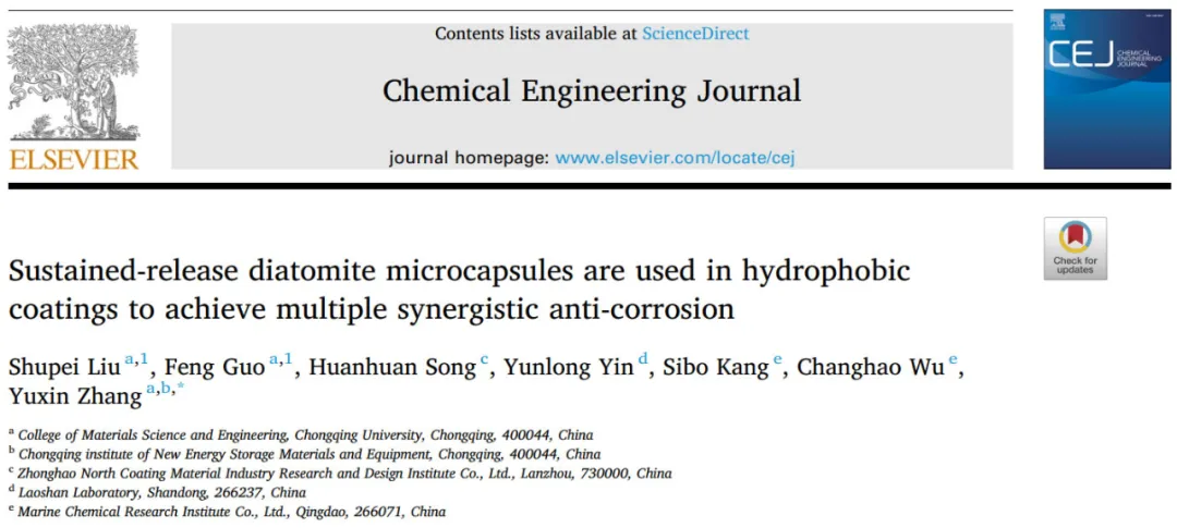 近期,重庆大学张育新团队采用水热合成、真空浸渍和表面改性工艺,成功组装出一种以硅藻土为载体、具有氯离子吸附和持续防腐性能的疏水缓释填料,从而制备出具有长期疏水性和耐腐蚀性的复合涂层。
