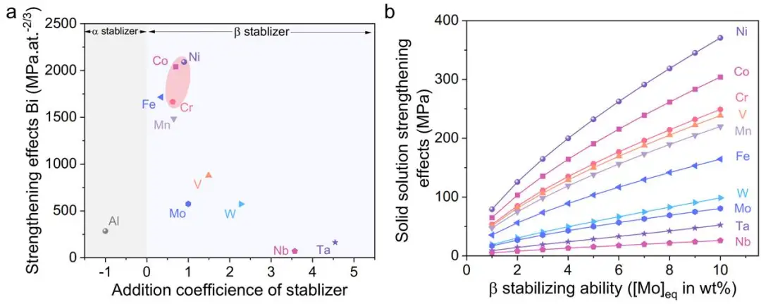 一种元素稳定 β 相的能力(Mo 当量)并不等价于它单位含量下提供的固溶强化能力,作者引入了一个“双参数设计框架”: