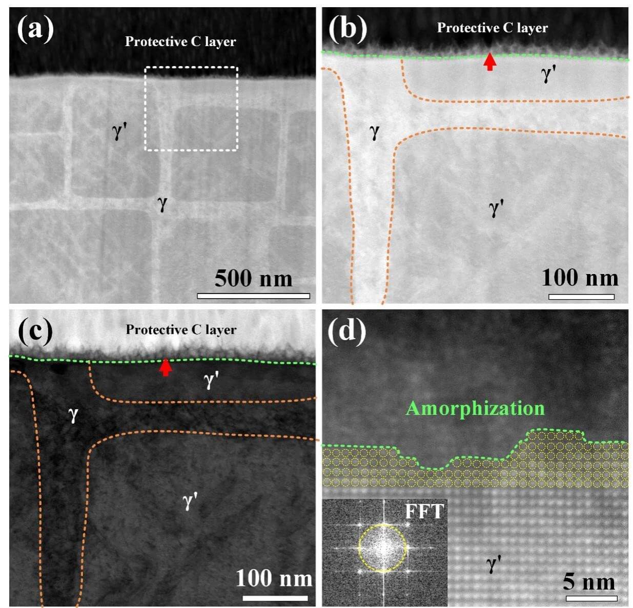 1. 初始氧化(10-15秒)(图2-3):合金表面的γ和γ'两相区域同时发生非晶化,并迅速在表面形成NiO纳米颗粒和初生的Al₂O₃层。