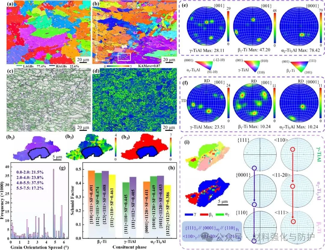④ 全层片β1+γ组织为性能优化提供新的组织设计窗口