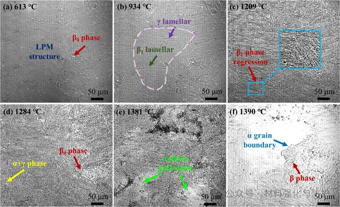 γ-TiAl合金是一种低密度、高强度的金属间化合物,特别适合航空航天发动机的耐热部件制造,其密度只有4.0g/cm³,但比强度很高,在600-900℃高温下仍能保持优异的抗氧化和抗蠕变性能。γ组织(NG)、双态组织(DP)与全层片组织(FL)是传统γ-TiAl合金中常见的组织类型,其中,全层片组织因也是该合金高温强度和蠕变抗力的主要来源之一,但通常仅由α2+γ层片构成,且对成分与热处理极为敏感。近年来,β稳定元素(如Nb、Mo、Fe)被引入γ-TiAl合金体系,用以改善热加工性能与组织可控性,然而,β相的引入往往伴随着室温塑性下降或组织不稳定问题。