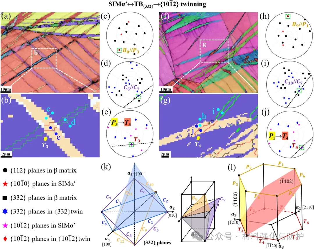 变形后合金中存在大量SIMα'带和{332}孪生带,其中SIMα'面积分数高达11.6%,这些带作为障碍物,在与SIMα'或{332}孪生相遇时,会发生相互作用,并最终触发二次{1012}孪生。