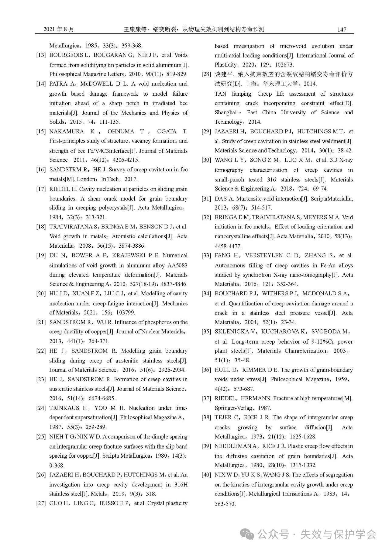 华东理工大学-涂善东院士/南京工业大学-巩建鸣教授等:蠕变断裂:从物理失效机制到结构寿命预测