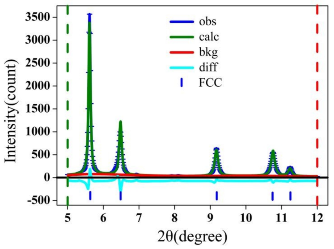 图3 样品Rietveld精修的X射线衍射图(观察、计算和差异图)。