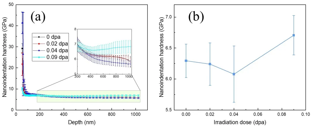 核燃料组件(由燃料棒、定位格架及支撑结构组成)是反应堆内的产热部件,同时构成第一道安全屏障。718合金作为一种沉淀强化型镍基高温合金,因其高强度、优异的抗辐照肿胀性能及卓越的耐腐蚀性能,被用于制造燃料组件定位格架弹簧等堆内构件。燃料组件定位格架弹簧长期处于强中子辐照与高温高压水腐蚀环境,易发生辐照辅助应力腐蚀开裂。目前,全球多座轻水堆中已出现718合金的辐照致性能退化现象。辐照对合金的影响包括非平衡偏聚、微观结构演变及硬度变化等,这些均可能导致材料性能退化或失效。当前关于718合金辐射损伤的研究多集中于析出相损伤与宏观力学性能变化,但多数研究尚未系统关注γ″相存在的三种晶体学变体,而不同变体可能表现出截然不同的辐照损伤行为。同时,低剂量质子辐照对材料力学性能的影响机制也亟待深入探究。 近日,我院检测中心张志明研究员与中国科学院金属研究所相关团队研究探讨了低剂量质子辐照下718合金的微观结构演变与硬度变化规律,揭示了其组织演化规律与辐照硬化机制。相关研究成果以“The role of microstructural evolution in irradiation hardening of Alloy 718 under low dose proton irradiation”为题发表在核材料研究领域权威期刊《Journal of Nuclear Materials》上。 正文 原论文首页 在315℃下,采用1.5 MeV质子对718合金进行辐照,位移损伤剂量分别达到0.02、0.04与0.09 dpa。微观结构表征结果表明,低剂量质子辐照对Alloy 718的影响主要表现为辐照缺陷、γ″相无序化及辐照硬化,未观察到空洞与辐照诱导偏析现象。质子辐照剂量越高,缺陷密度越大,但缺陷尺寸随辐照剂量增加未发生显著变化。受位移级联与替换碰撞作用,γ″相会发生会失去其有序结构仍保持四方晶体结构。在相同辐照剂量下,γ″相的三种变体表现出不同的稳定性,其中[001]方向平行于质子束的变体最为稳定。随着辐照剂量升高,材料硬度呈现先下降后上升的变化趋势。该力学性能演变由辐照缺陷导致的硬化效应与γ″相无序化引发的软化效应共同驱动。在0.04 dpa辐照剂量下,γ″相无序化起主导作用,材料硬度达到最低值;当辐照剂量增至0.09 dpa时,受缺陷-位错相互作用影响,硬度达到最大值。 图1. 不同辐照剂量718合金EDS面扫描和线扫描结果:(a)0 dpa;(b)0.02 dpa;(c)0.04 dpa;(d)0.09 dpa 图2. 不同辐照剂量718合金的SAED和DF像:(a)0 dpa;(b)0.02 dpa;(c)0.04 dpa;(d)0.09 dpa 图3. 不同辐照剂量718合金的HADDF和BF像:(a)0 dpa;(b)0.02 dpa;(c)0.04 dpa;(d)0.09 dpa 图4. 718合金中γ″相三种变体的HRTEM像以及对应的FFT图案 图5. 辐照后718合金硬度随深度的变化曲线(a)和硬度随剂量的变化曲线(b)