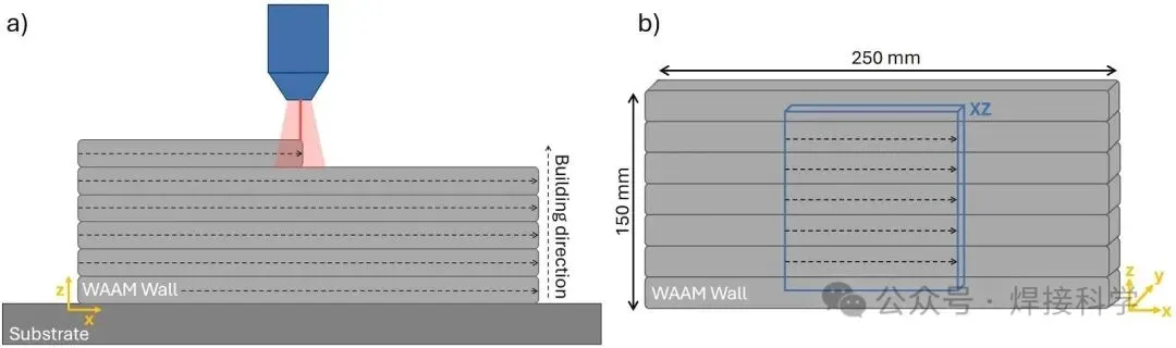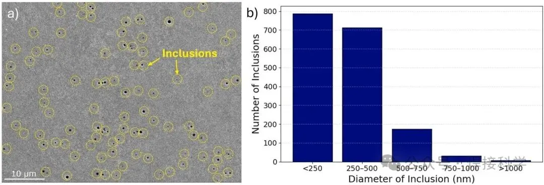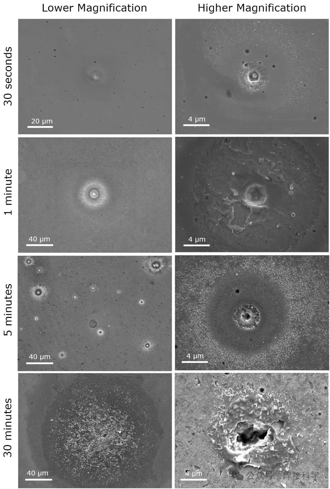 2025年11月27日,比利时布鲁塞尔自由大学可持续材料工程研究小组的研究团队在《Corrosion Science》期刊发表最新研究文章“Role of non-metallic inclusions in the initiation and propagation of corrosion in wire arc additive manufactured low-alloy steel”,研究了电弧增材制造(WAAM)低合金钢在海洋环境中的早期腐蚀行为,重点探究了非金属夹杂物对腐蚀萌生和扩展机制的影响。 该研究探究了电弧增材制造(WAAM)低合金钢的早期腐蚀行为。研究人员将试样暴露于海洋环境中,考察了非金属夹杂物对腐蚀的影响。尽管由于快速凝固,锰硅酸盐在增材制造钢中较为常见,且在某些增材制造钢种(如不锈钢)中通常被认为对腐蚀呈惰性,但在该研究的WAAM低合金钢中,这些夹杂物可能含有富MnS的微小区域。由于其化学不稳定性,这些富MnS区域成为点蚀萌生的优先位点。随着在海洋环境中暴露时间的增加,富MnS区域周围的金属基体发生局部溶解,导致夹杂物脱落和点蚀形成,随后形成周围的圆形腐蚀前沿。该前沿逐渐扩展,包裹并脱落相邻的夹杂物,最终从局部腐蚀转变为全面腐蚀。 实验方法 该研究以ER90S-G焊丝通过电弧增材制造(WAAM)制备的低合金钢为研究对象,其化学组成包含C、Si、Mn、Cr、Mo、V等元素,Fe为基体元素。采用扫描电子显微镜(SEM)、电子背散射衍射(EBSD)、能谱仪(EDS)、扫描开尔文探针力显微镜(SKPFM)、电流传感原子力显微镜(CSAFM)对材料的微观结构、夹杂物的分布、尺寸、形态及化学成分等进行表征;通过动电位极化试验对比WAAM钢与传统锻造钢的耐腐蚀性;采用3.5wt%NaCl溶液模拟海洋环境进行浸泡试验,探究不同浸泡时间(30秒、1分钟、5分钟、30分钟)下的腐蚀萌生与扩展过程;借助微毛细管技术,在施加0.2%拉伸应变的条件下进行应力辅助腐蚀试验,观察裂纹萌生情况。 论文图片 图1.(a)WAAM沉积过程的示意图,突出显示了扫描策略;(b)用于材料分析的试样提取方式。 图2.(a)显示WAAM试样中夹杂物分布的场发射扫描电子显微镜(FE-SEM)图像;(b)夹杂物数量与其直径的关系图。 图3.WAAM制备的ER90S-G钢中的典型夹杂物,由(Si,Mn)ₓOᵧ组成:(a)含有微小MnS区域的夹杂物;(b)未检测到硫含量的夹杂物。示意图中标注了已识别的区域:SiO₂、(Si,Mn)ₓOᵧ和MnS。 图4.传统钢和WAAM钢试样在0.1M NaCl溶液中的动电位极化曲线。 图5.(a)在3.5wt%NaCl溶液中浸泡30秒后的扫描电子显微镜(SEM)图像,可见夹杂物处的腐蚀萌生。表格总结了所分析的夹杂物及出现点蚀的夹杂物情况;(b)点蚀密度随在3.5wt%NaCl溶液中浸泡时间的变化关系。 图6.试样在3.5wt%NaCl溶液中浸泡30秒后不同区域的扫描电子显微镜(SEM)图像,展示了腐蚀的初始阶段:(a)夹杂物周围的点蚀萌生;(b)通过夹杂物相邻钢基体的溶解导致点蚀加深;(c)夹杂物脱落。注:在30秒的浸泡时间内,同一试样上已能观察到这三个阶段。 图7.试样在3.5wt%NaCl溶液中浸泡30秒后的扫描电子显微镜(SEM)图像,展示了局部腐蚀形成的早期阶段:(a)黄色大箭头指示腐蚀前沿的形成,白色虚线圆圈突出显示尚未发生腐蚀的夹杂物;(b)点蚀中心的放大图,捕捉到特定夹杂物处的腐蚀萌生以及被腐蚀前沿触及并开始脱落的夹杂物。 图8.试样在3.5wt%NaCl溶液中浸泡30秒后的扫描电子显微镜(SEM)图像,显示腐蚀始于含硫夹杂物的点蚀中心(通过能谱仪(EDS) mappings确认)。 图9.在3.5wt%NaCl溶液中浸泡试验后局部腐蚀萌生和扩展的图像,按浸泡时间分组:(a,b)30秒;(c,d)1分钟;(e,f)5分钟;(g,h)30分钟。每个时间间隔均同时呈现低倍和高倍图像,左侧为低倍图像,右侧为高倍图像。 图10.含三个所研究夹杂物区域的电子背散射衍射(EBSD)分析:(a)场发射枪扫描电子显微镜(FEG-SEM)图像;(b)同一区域的晶粒平均取向差(KAM)图。 图11.通过场发射扫描电子显微镜-能谱仪(FE-SEM-EDS)(1)、形貌图(2)、伏特电位图(3)、电流图(4)以及线扫描图谱(5)对夹杂物进行的分析(通过扫描开尔文探针力显微镜(SKPFM)和电流传感原子力显微镜(CSAFM)获得):(a)未检测到硫含量的夹杂物;(b)含有MnS的夹杂物。 图12.利用FactSage软件计算得到的298.15K下Mn-S-H₂O体系的Pourbaix图(电位-pH图)。 图13.场发射扫描电子显微镜(FE-SEM)图像,展示了试样在3.5wt%NaCl溶液中浸泡后施加拉伸载荷的腐蚀形貌和裂纹形成情况,浸泡时间分别为:(a)30秒;(b)5分钟;(c)30分钟。 图14.WAAM制备的低合金钢在NaCl溶液中浸泡后早期腐蚀阶段的示意图。左侧图示为俯视图,右侧图示为横截面图。从上到下,依次展示了浸泡时间的推移过程,突出显示了试样中不同类型夹杂物的存在,腐蚀始于含MnS的区域,并通过腐蚀前沿的扩展向其他夹杂物蔓延。 论文总结 该研究探究了电弧增材制造(WAAM)制备的ER90S-G钢中夹杂物在海洋环境下对腐蚀萌生和早期扩展的影响,得出以下结论: (1)该材料中的夹杂物尺寸细小且呈圆形,尺寸小于1μm(近90%的颗粒小于500nm),均匀分布于整个试样中。这些夹杂物主要为(Si,Mn)ₓOᵧ,部分还含有硫元素,表明存在MnS。 (2)腐蚀主要始于含MnS的夹杂物,点蚀优先在这些位置萌生并最终导致夹杂物从金属基体脱落。尽管并非所有夹杂物都是优先腐蚀位点,但一旦含MnS的(Si,Mn)ₓOᵧ夹杂物处形成点蚀,就会发展出圆形腐蚀前沿,并向周围先前未受影响的颗粒扩展,这些颗粒随后成为活性腐蚀位点并依次脱落。 (3)在MnS区域与周围的(Si,Mn)ₓOᵧ或金属基体之间未检测到显著的伏特电位差,且MnS表现出非导电行为。这是由于在该材