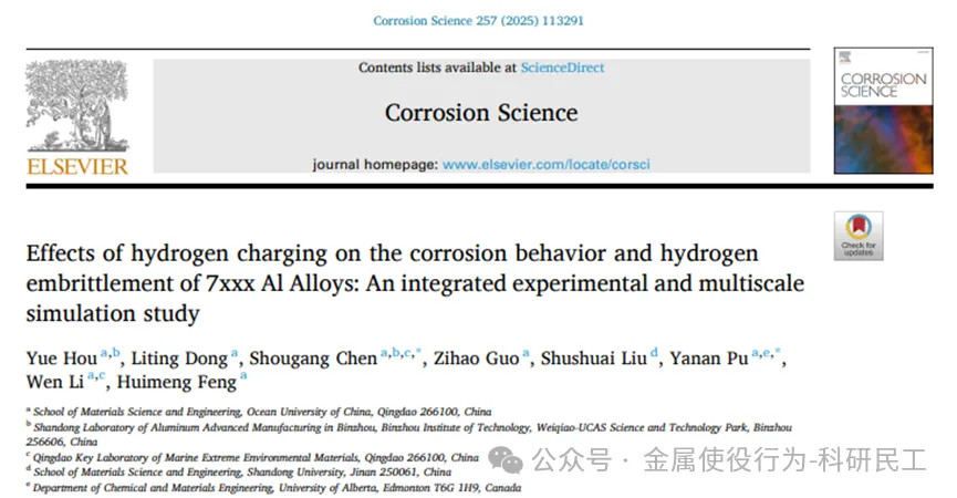 在氢能储运材料研发领域,7xxx系列铝合金的氢脆问题犹如一座亟待攻克的科学堡垒。传统研究多聚焦于“静态”氢含量与最终力学性能的关联,却往往忽视了氢在动态服役过程中与材料微结构的实时交互。近期发表于Corrosion Science的研究,通过一项精巧的集成实验与多尺度模拟设计,不仅验证了氢脆机制的复杂性,更在方法论、理论框架和工程应用层面展现了多项突破性创新,为我们打开了理解与设计抗氢脆材料的新视野。