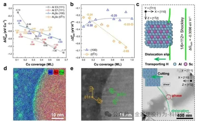 - 计算预言:在实验合金制备之前,已通过计算预测了最优成分(Al-Sc-Cu体系)、最优相(Cu掺杂Al₃Sc)、最优工艺(特定固溶时效制度)及其性能增益(显著降低氢脆敏感性)。
