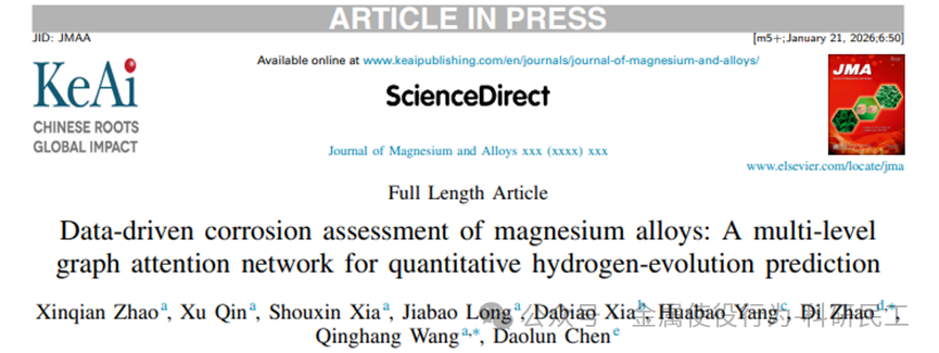 近期,一项发表于 Journal of Magnesium and Alloys 的重磅研究提出的 “多级图注意力网络”(Multi-level Graph Attention Network, MGAT) ,成功实现了从镁合金微观结构图像到宏观析氢动力学曲线的 端到端精准预测,其预测精度(R² > 0.997)与泛化能力远超传统模型,标志着腐蚀研究从“经验试错”迈向“机理与数据融合”的新范式。