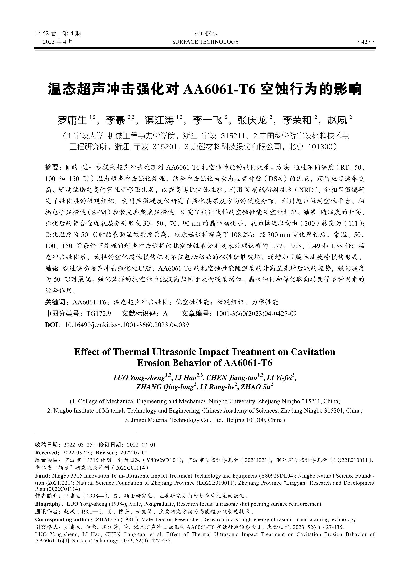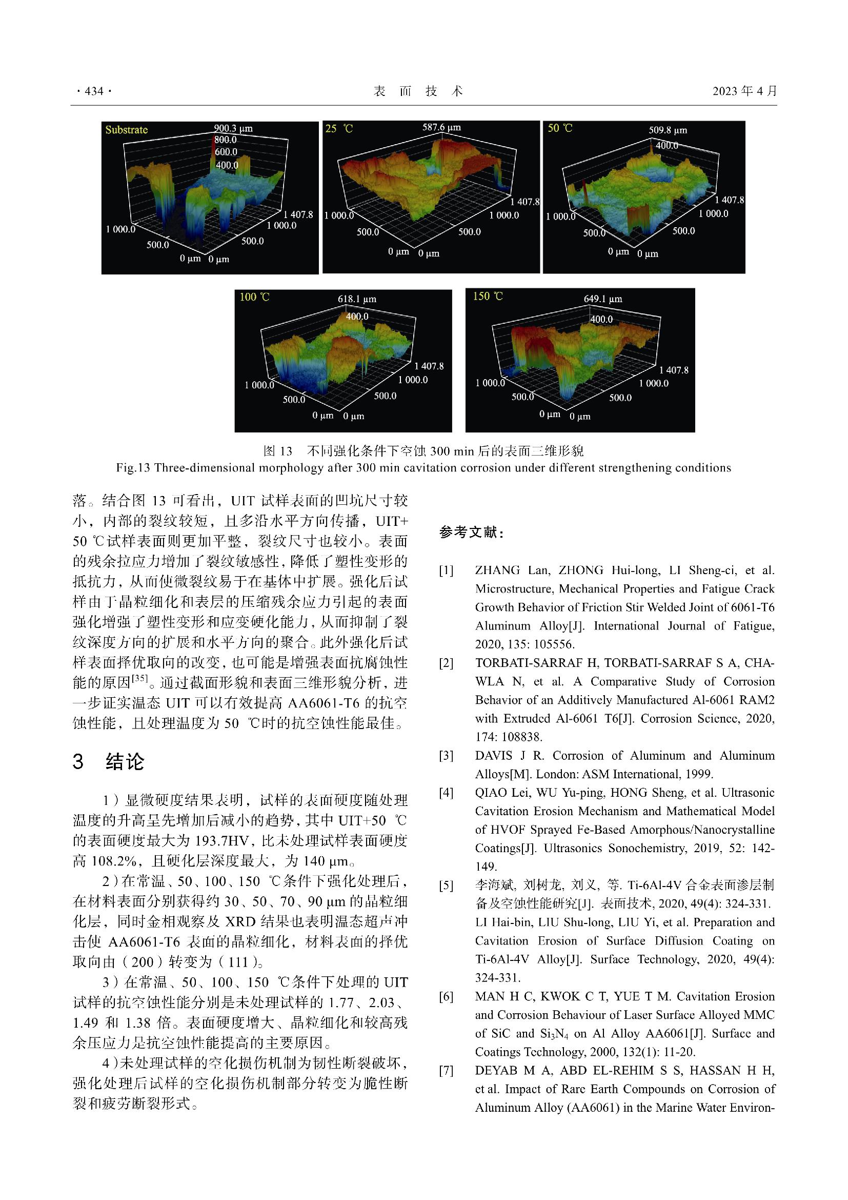 温态超声冲击强化对AA6061-T6空蚀行为的影响