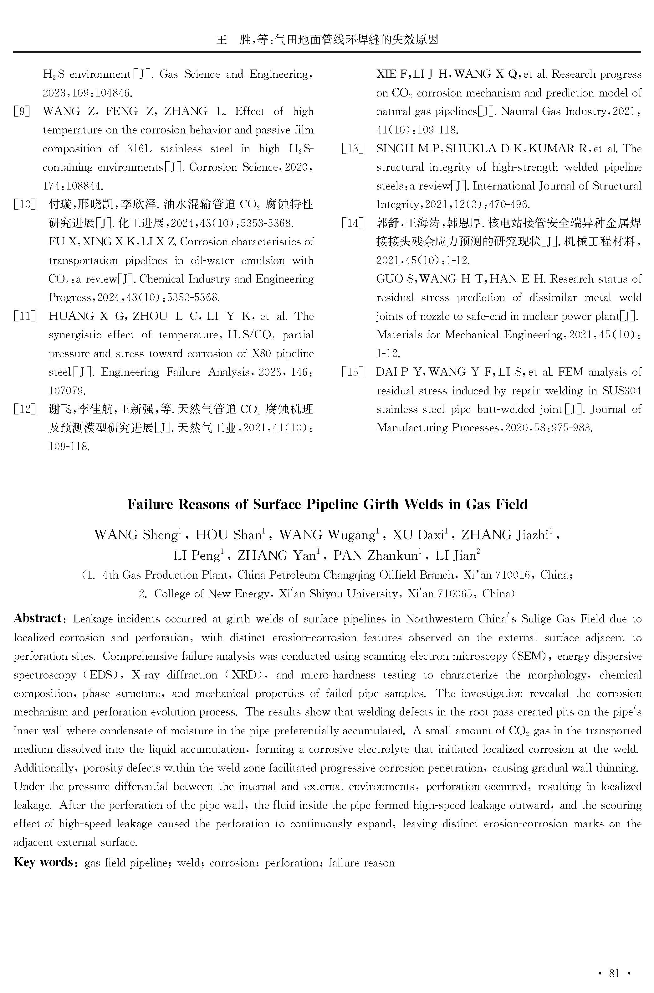 气田地面管线环焊缝的失效原因