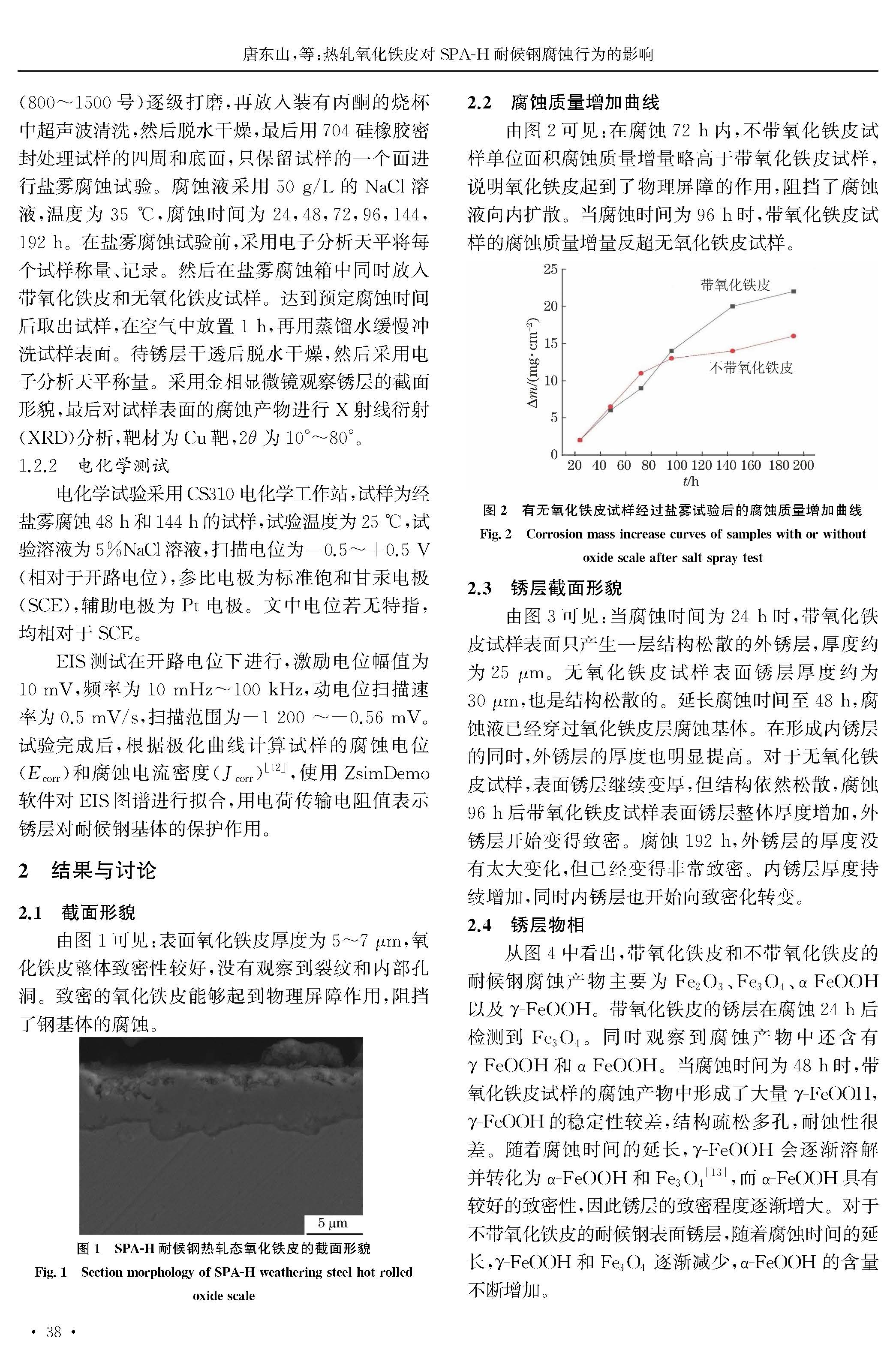 热轧氧化铁皮对SPA-H耐候钢腐蚀行为的影响