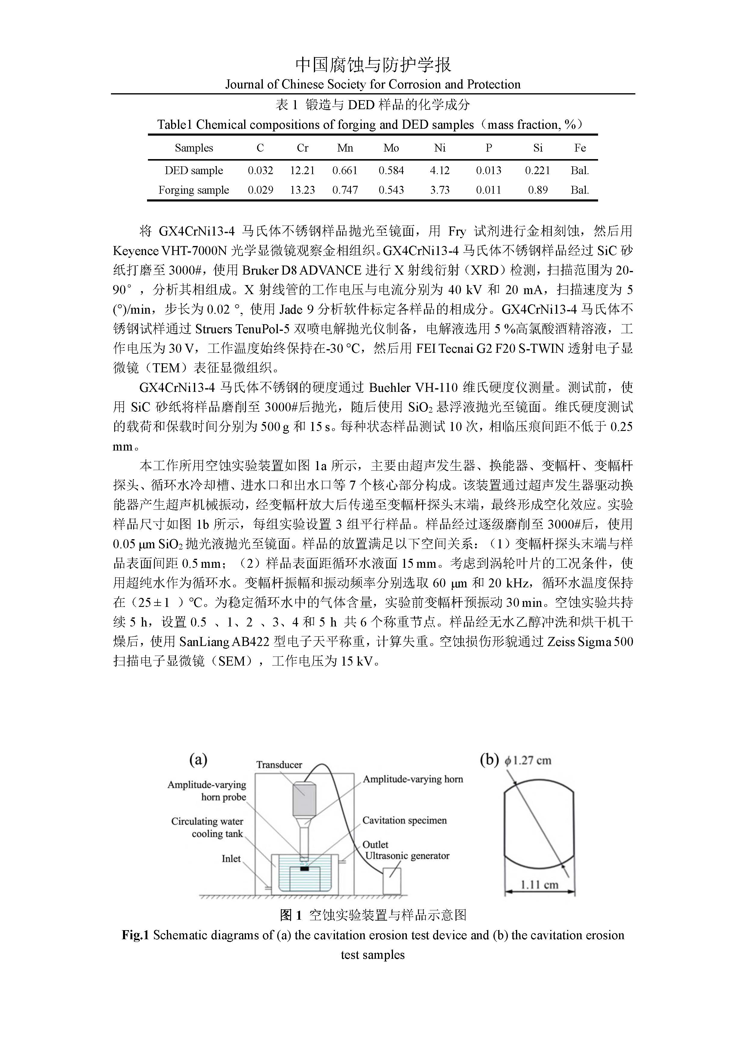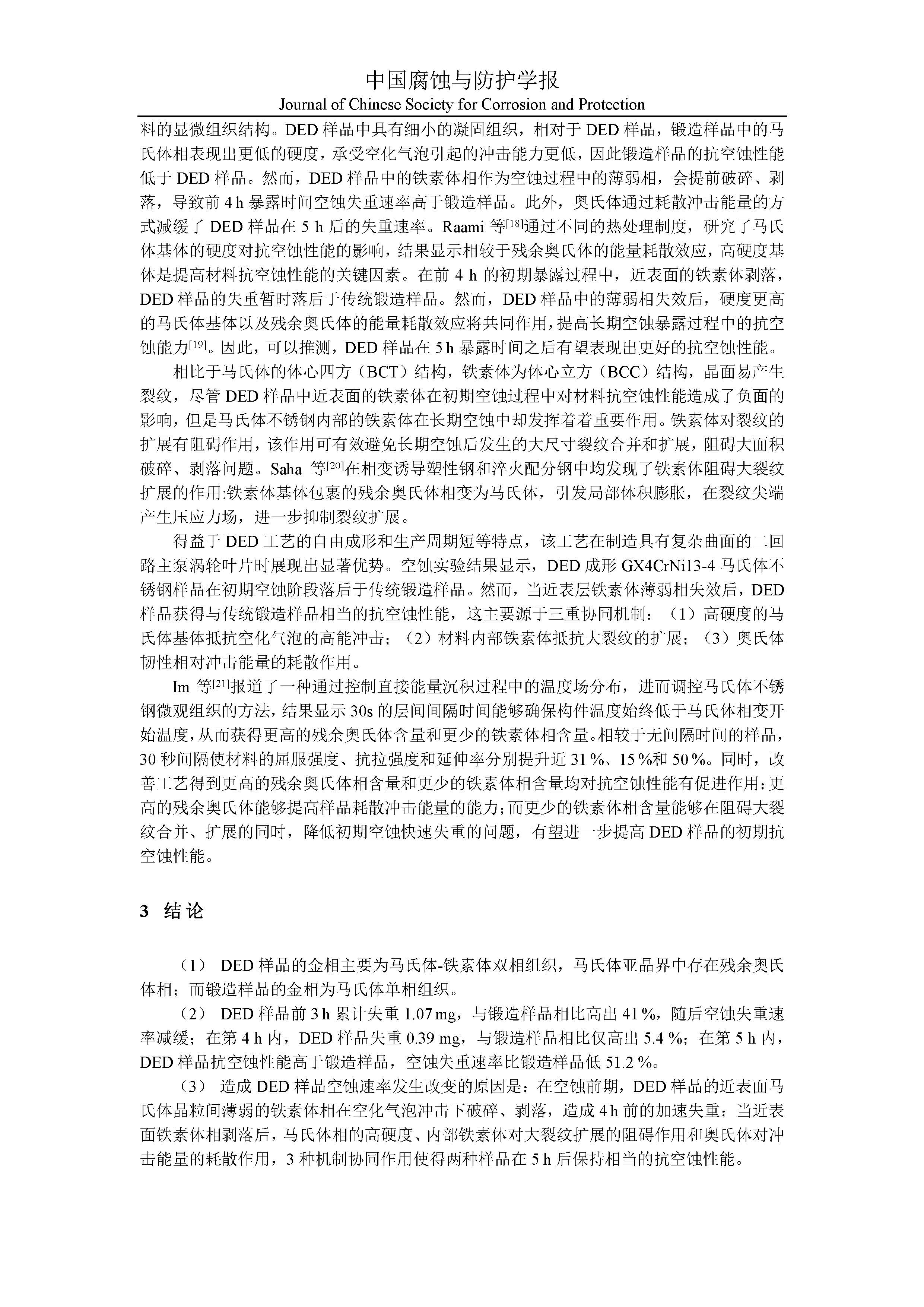 直接能量沉积GX4CrNi13-4马氏体不锈钢空蚀研究