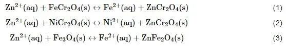 通常认为核电站一回路冷却系统注锌后,在金属材料表面氧化膜上会发生以下反应: