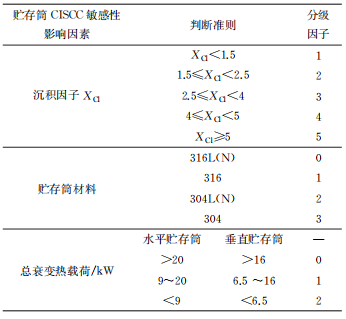 需要注意,不能认为具有相同CISCC敏感性分级数值的水平贮存筒和垂直贮存筒的腐蚀敏感性相同。此外,由于氯化物沉积和总衰变热载荷是随贮存时间而变化的,因此,应根据即时数据进行CISCC敏感性分级计算。对于给定的贮存筒,其CISCC敏感性分级等级越高, 表明其对 CISCC的敏感性越高。