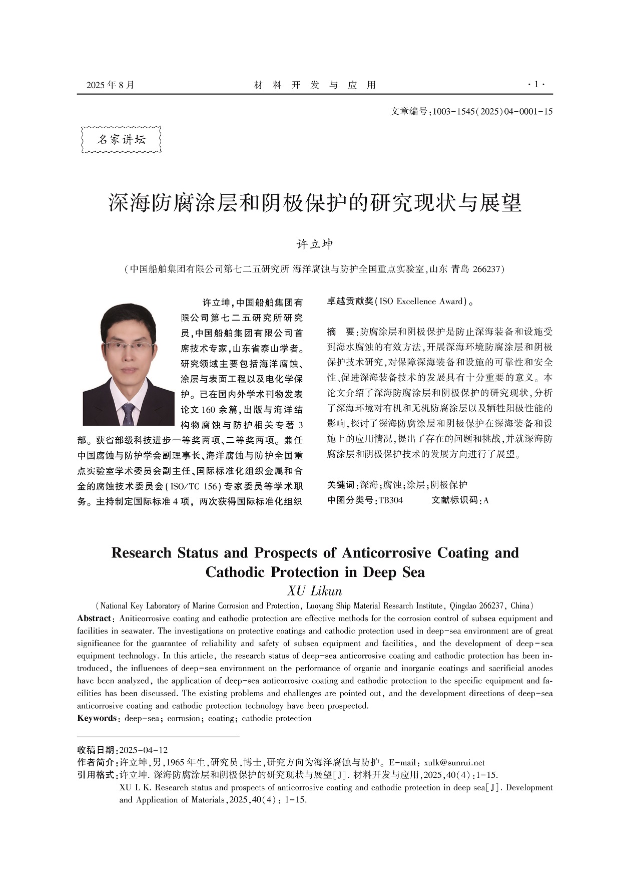2025-11-04 16:30:11 作者:许立坤 来源:中国腐蚀与防护学报 分享至: