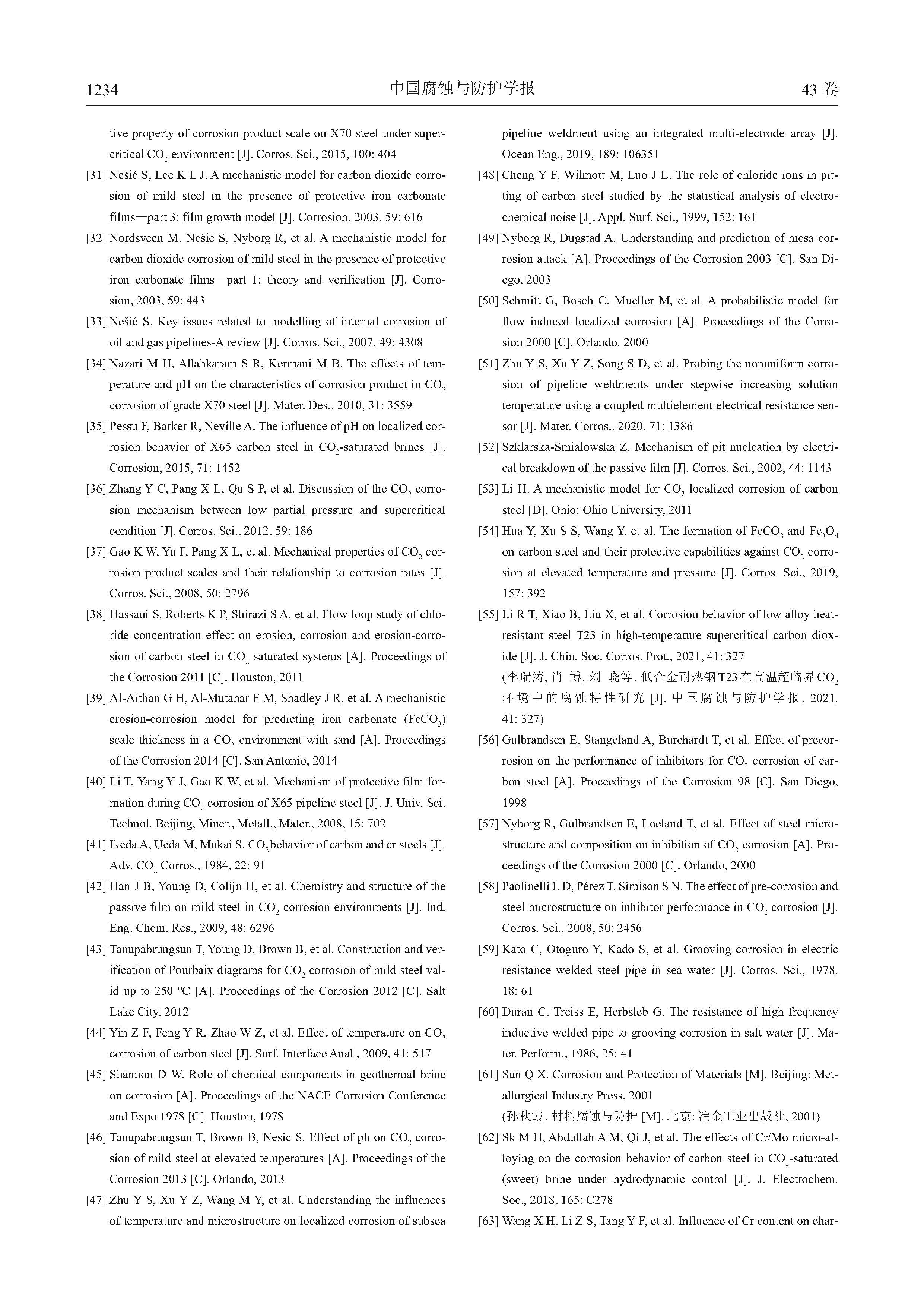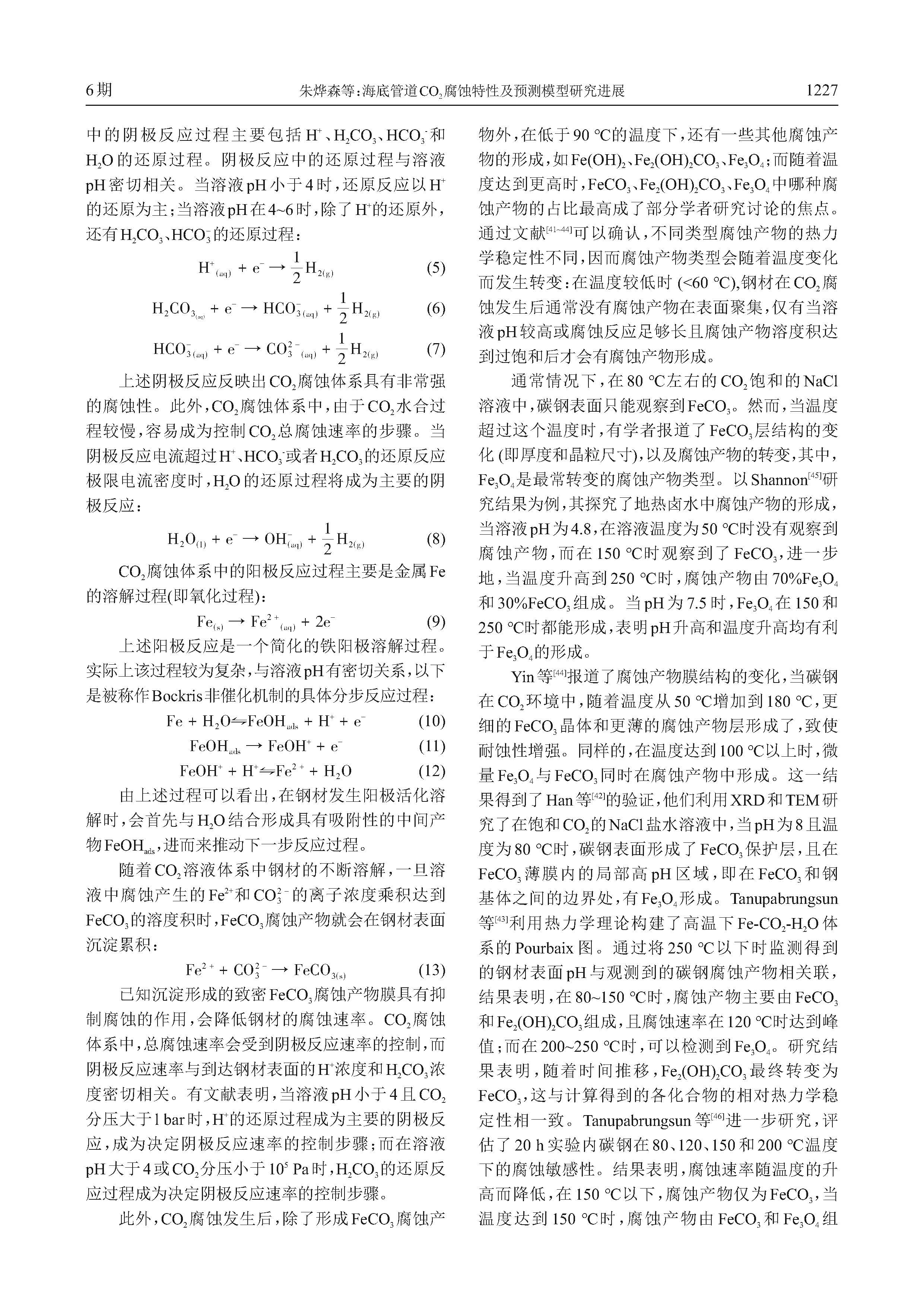 海底管道CO2腐蚀特性及预测模型研究进展