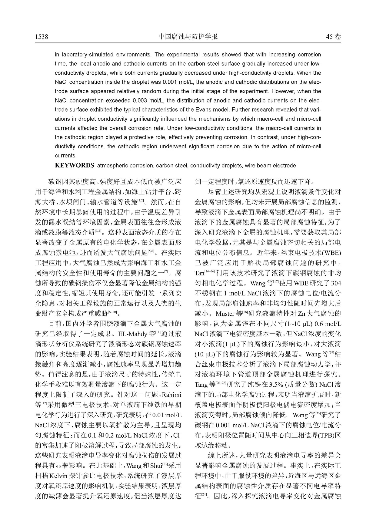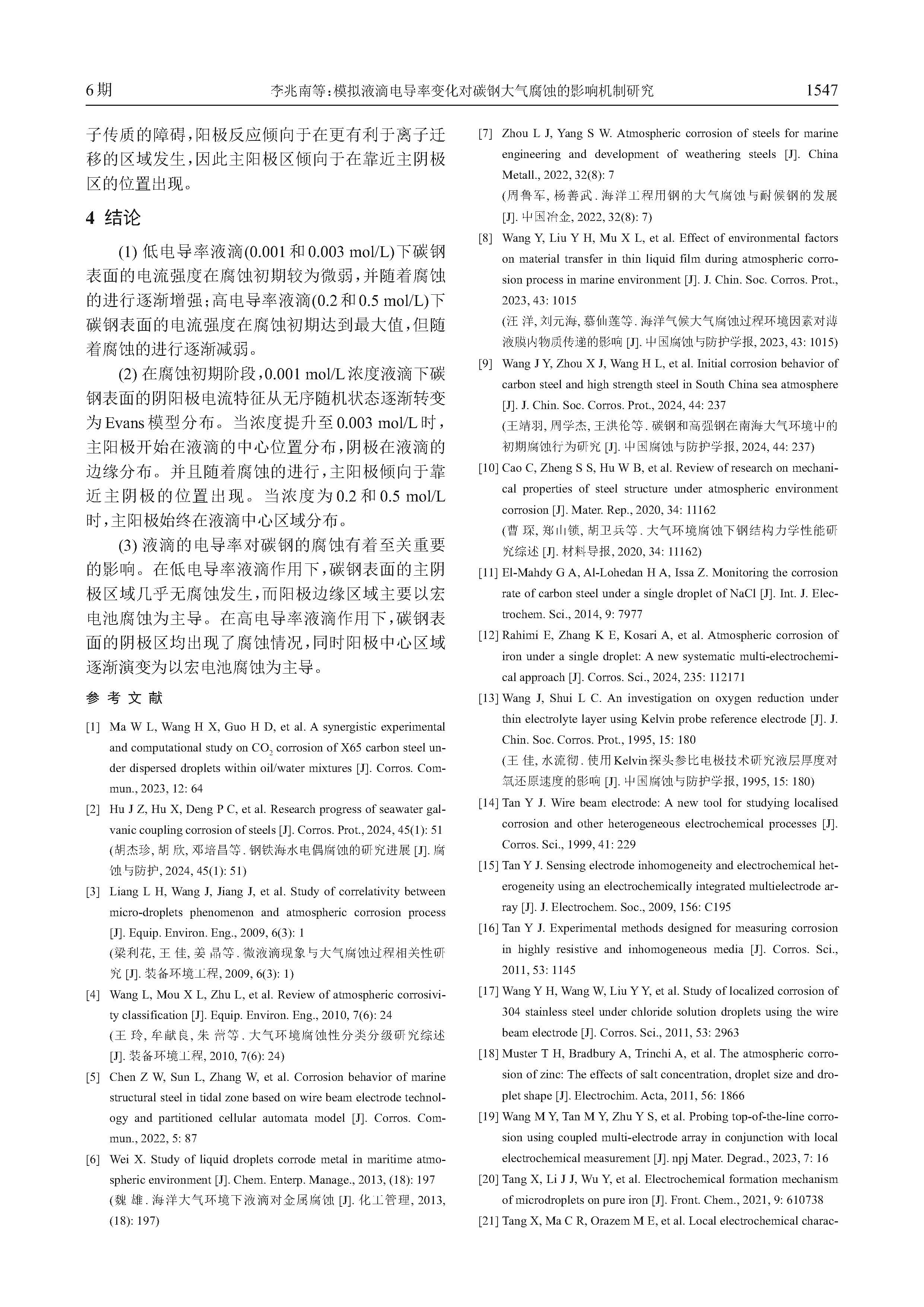 模拟液滴电导率变化对碳钢大气腐蚀的影响机制研究