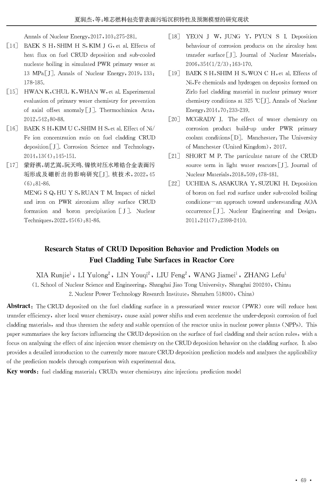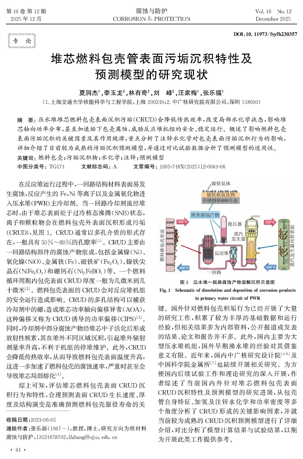 堆芯燃料包壳管表面污垢沉积特性及预测模型的研究现状