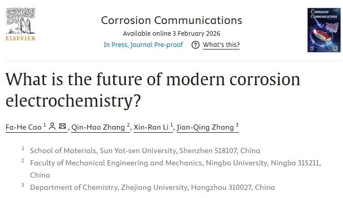 本文从反应机理视角系统反思了传统腐蚀电化学以表观参数为核心的研究范式,指出其在揭示真实腐蚀动力学方面的内在局限。文章提出应以本征反应动力学参数为核心,结合原位与微区电化学技术,实现对腐蚀过程的定量、机制化理解。该篇为腐蚀电化学从经验评估走向预测科学提供了新的研究路径。