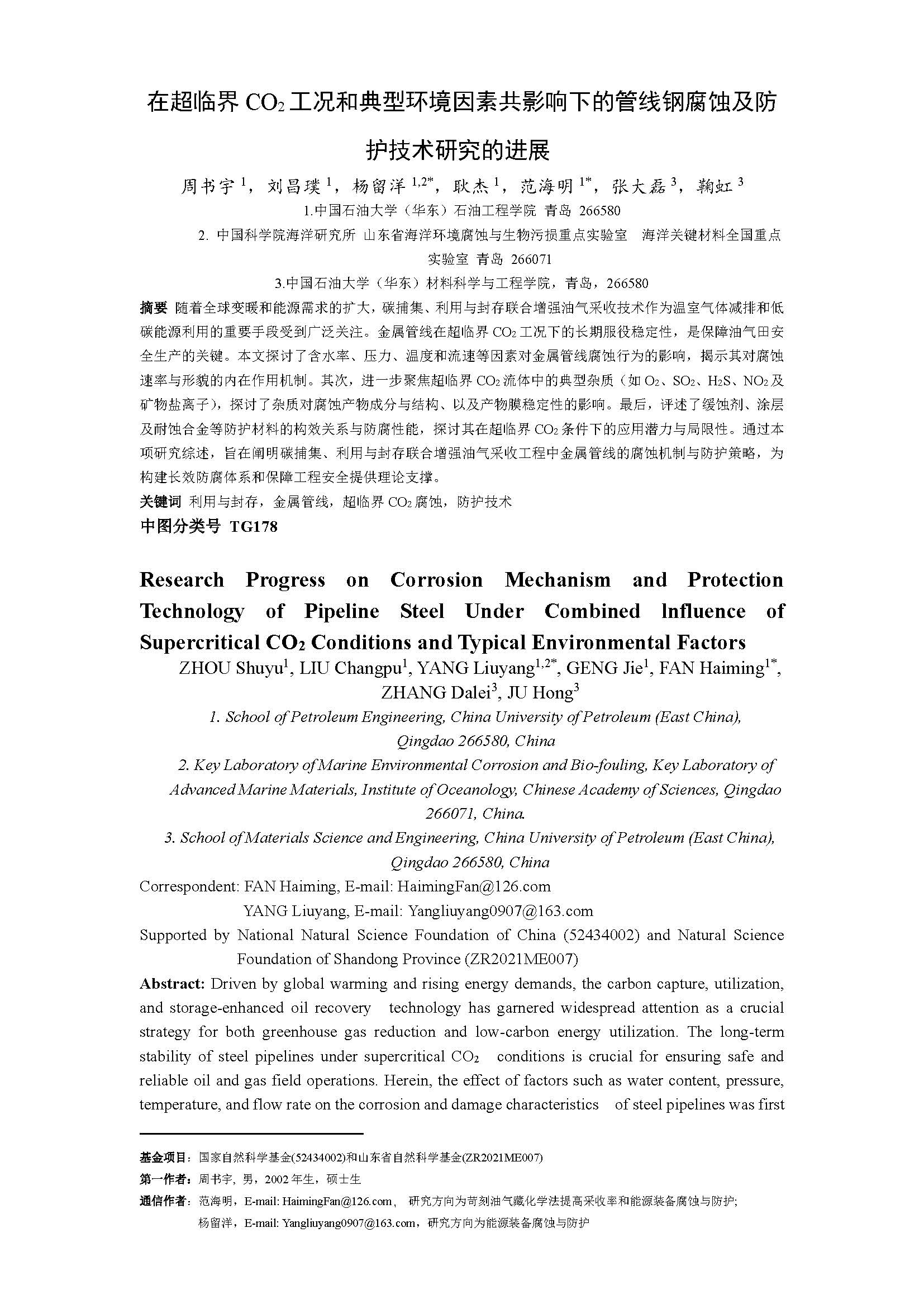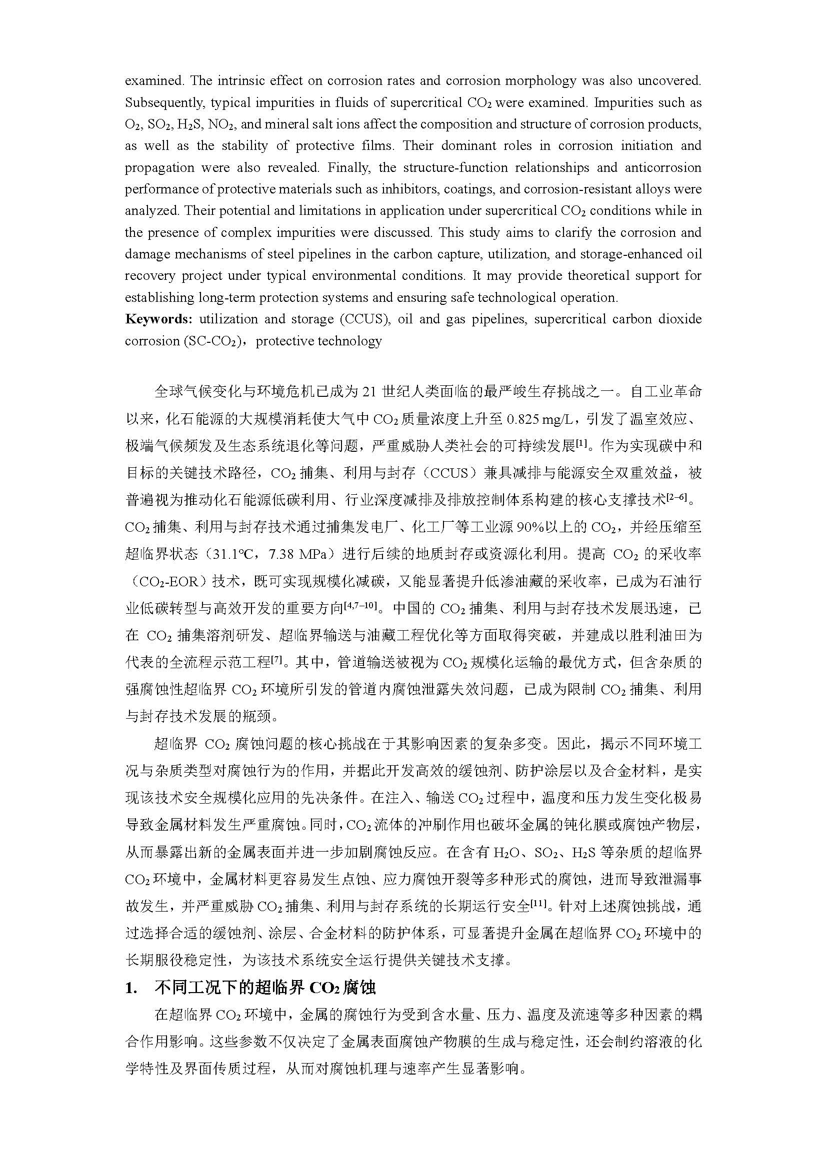 典型环境因素影响下超临界CO2工况金属管线腐蚀机理及防护技术研究进展