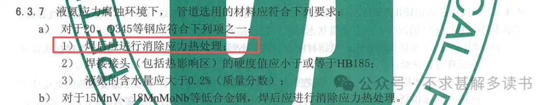 SHT3059-2012《石油化工管道设计器材选用规范》中关于液氨应力腐蚀环境的选材要求:规范中给出了液氨应力腐蚀环境的判定及处理要求,那么对于液氨的应力腐蚀机理到底是怎么样的一个过程,又应该如何进行预防和检测呢?液氨储罐一般都选择碳钢材质,无水液氨的产品质量标准GB/T 536-2017要求如下:正常情况来说,无水液氨对于碳钢只产生很轻微的均匀腐蚀,但是液氨储罐在充装,排料及检维修的时候,容易受到空气的污染,空气中的氧和二氧化碳会加速氨对于碳钢的腐蚀,具体的反应机理如下:反应中的氨基甲酸铵对碳钢有强烈的腐蚀作用,且焊缝处残余的应力较高,导致钢材表面的钝化膜产生破裂,从而造成应力腐蚀开裂。在液氨中使用的碳钢,如果未经过热处理,焊缝金属和热影响区都可能发生开裂,残余应力越大开裂的敏感性越高,一般来说,含水量低于0.005%(质量分数)或者大于0.2%(质量分数)时敏感性均较低,低于-5℃时几乎不会发生,介质中含有少量空气或者氧即可增加开裂的敏感性。氨冷冻装置,一些用于氨储运的碳钢或者低合金钢的管道,储罐和其它设备是易发生氨应力腐蚀开裂的设备。对于碳钢设备需要进行焊后热处理,在氨中加入少量的水(质量分数大于0.2%),控制焊接接头硬度不超过HB225(布氏硬度),防止空气或者氧气混入液氨。对于碳钢或者低合金钢设备或者管道内壁焊缝可以采用湿荧火磁粉检测,外壁采用超声波横波检测,外壁采用声发射检测的方法。《管道器材选用与工程应用》一书中也有所提及,供参考:实际工程设计的时候需要注意液氨的应力腐蚀工况并采取一定的措施。