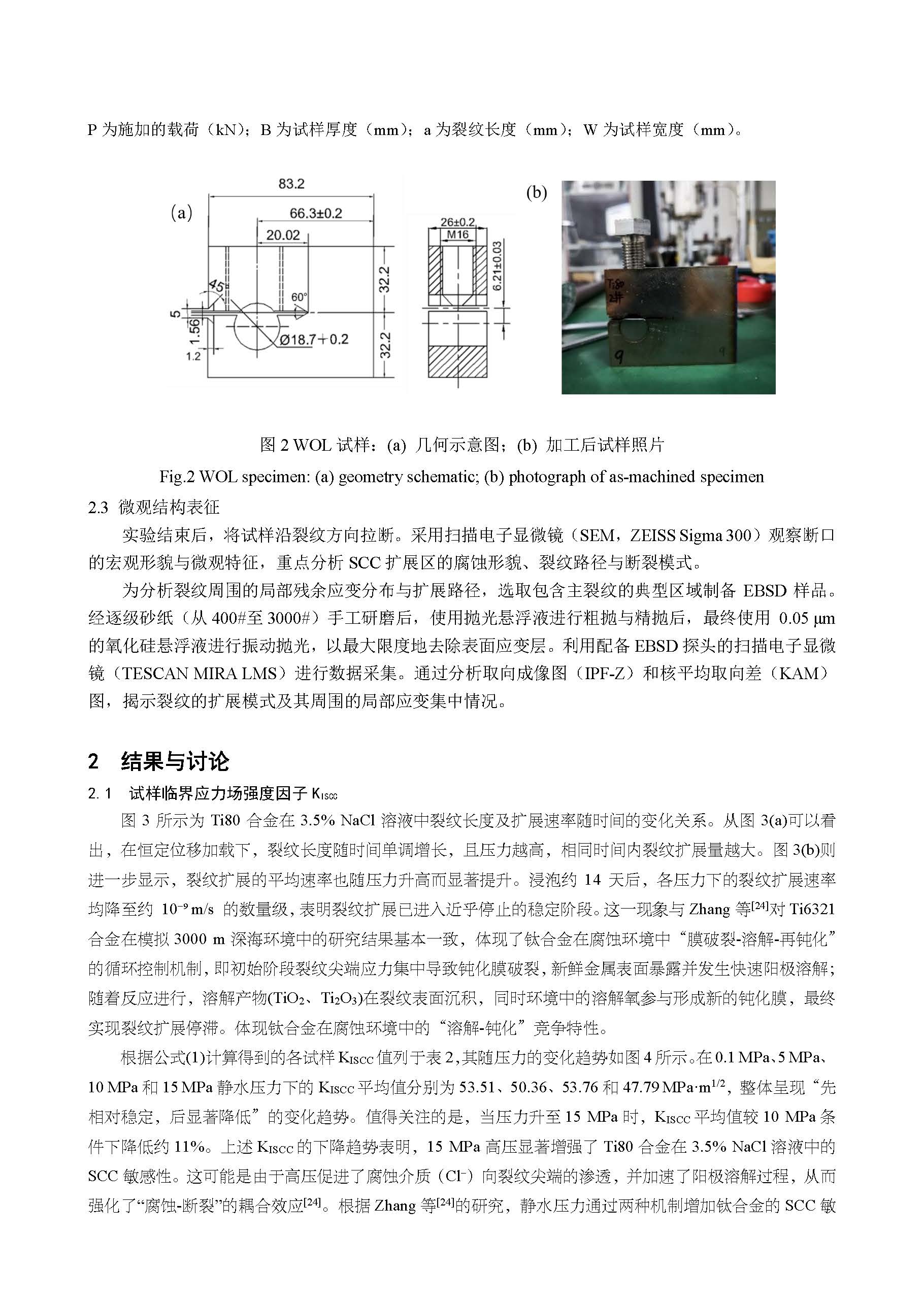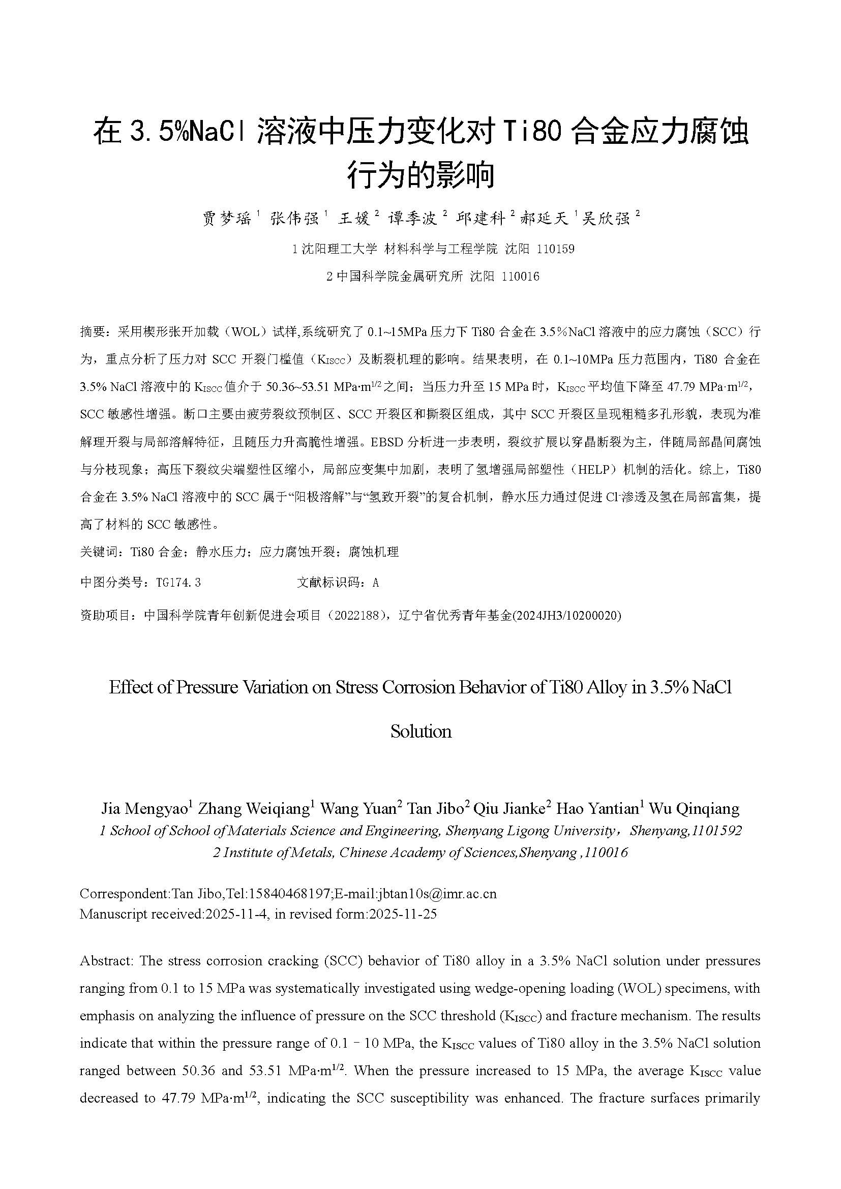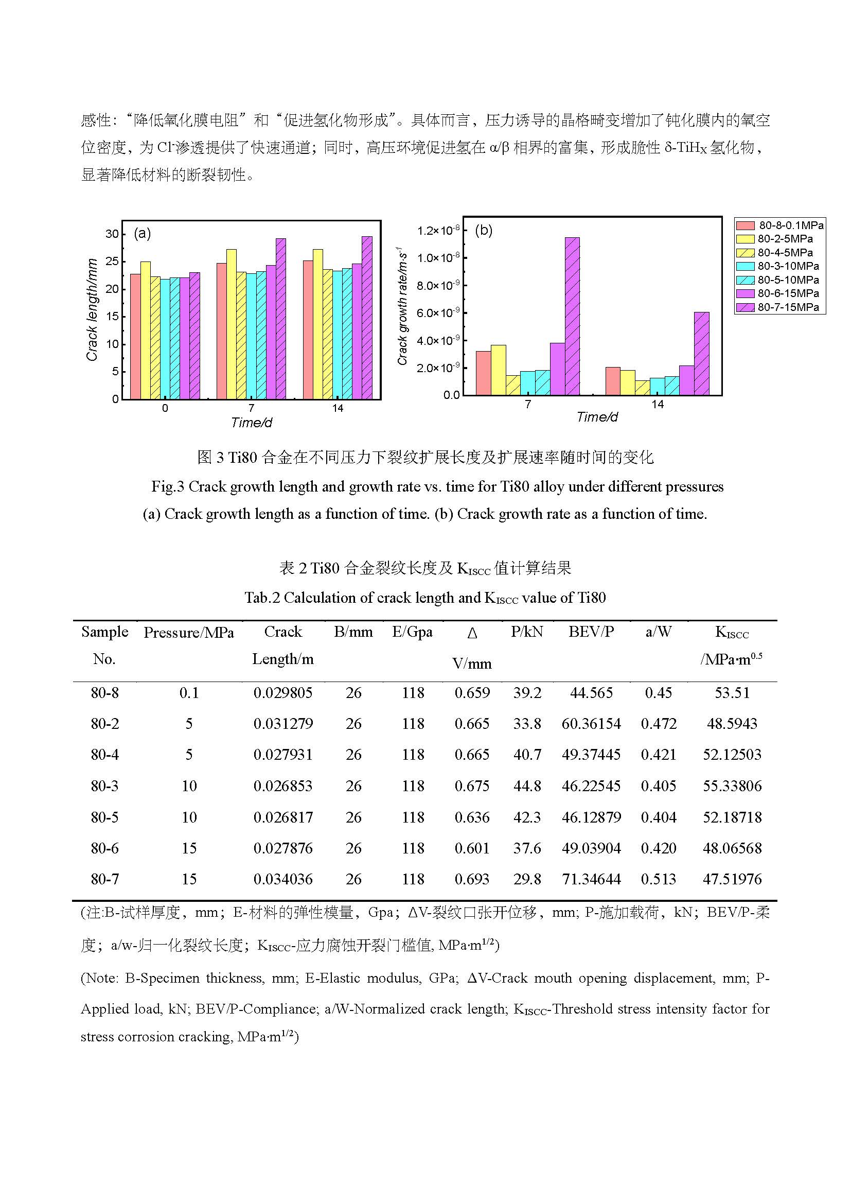 在3.5%NaCl溶液中压力变化对Ti80合金应力腐蚀行为的影响