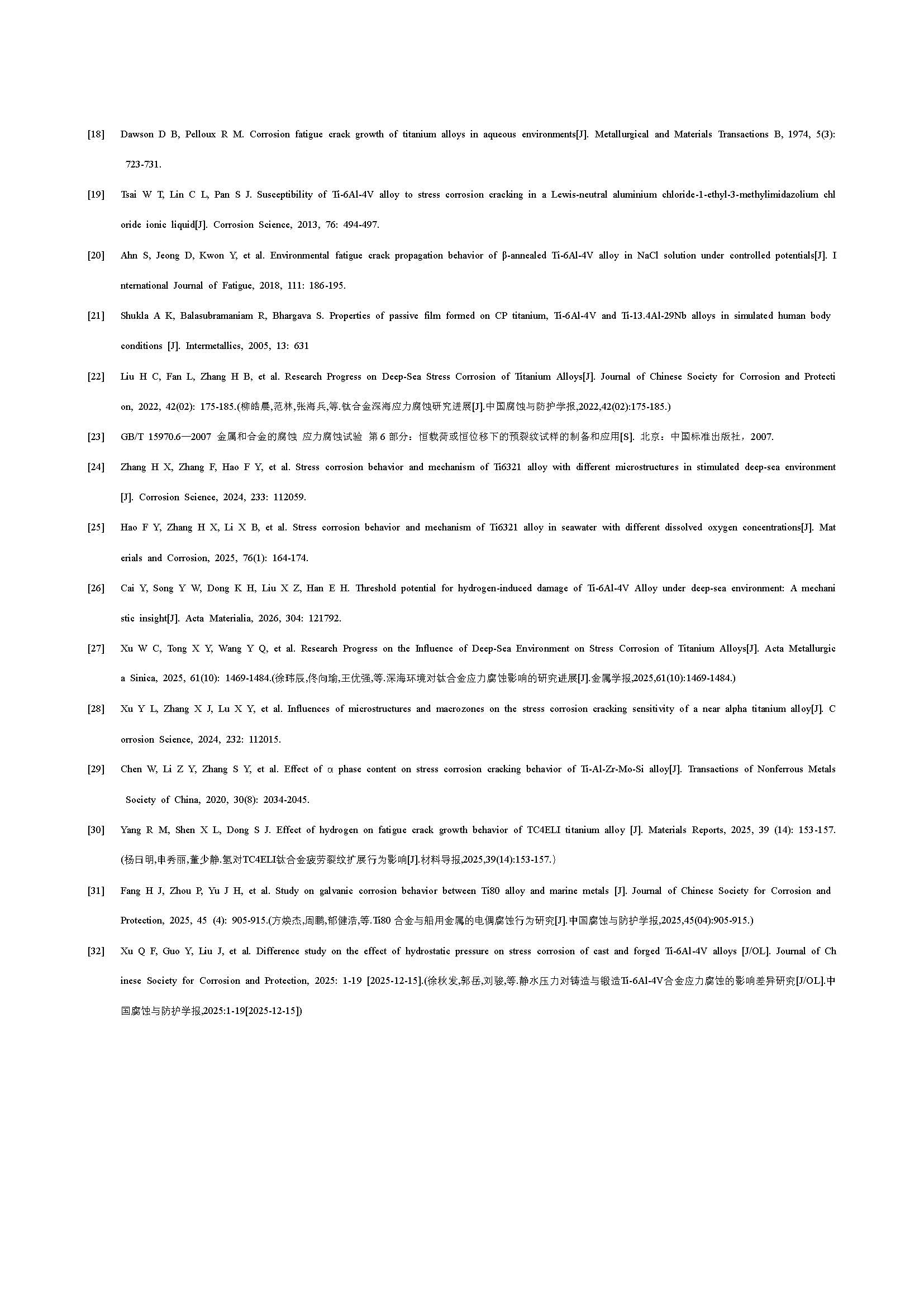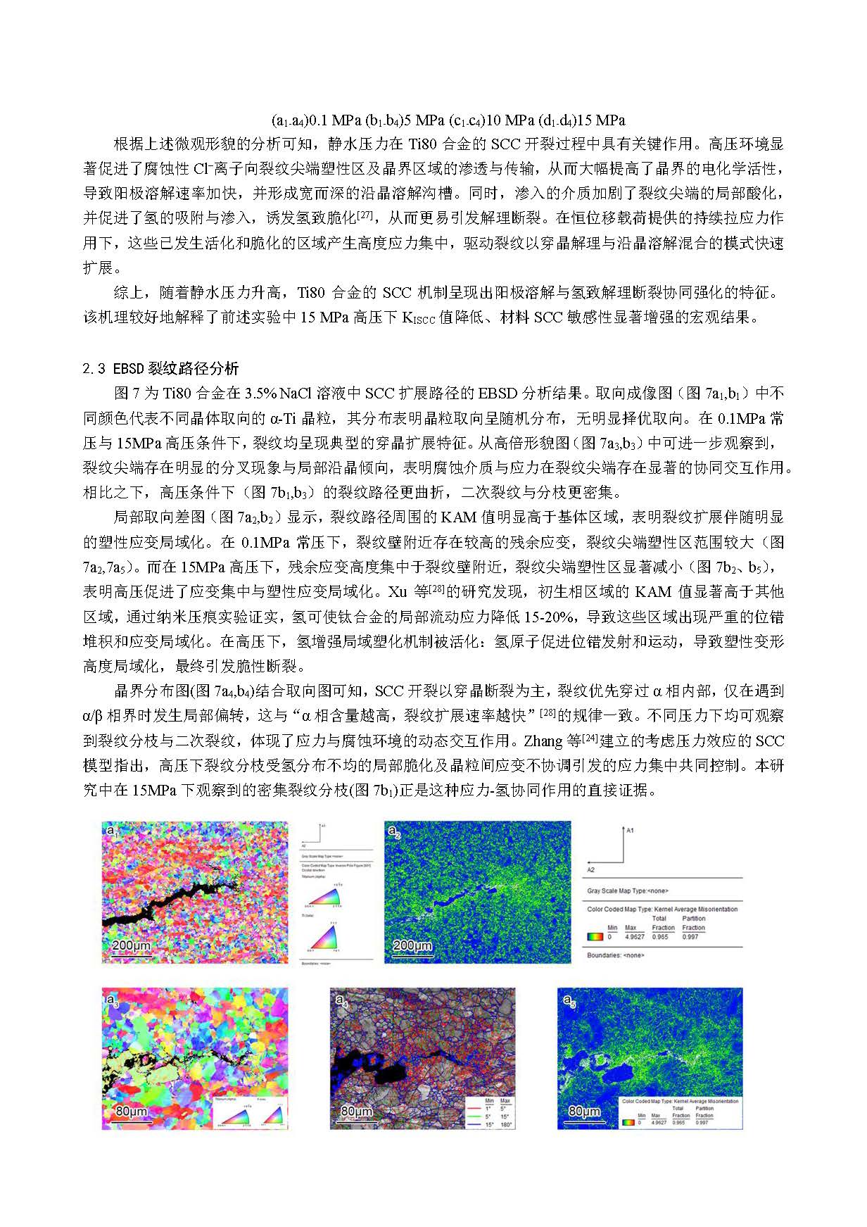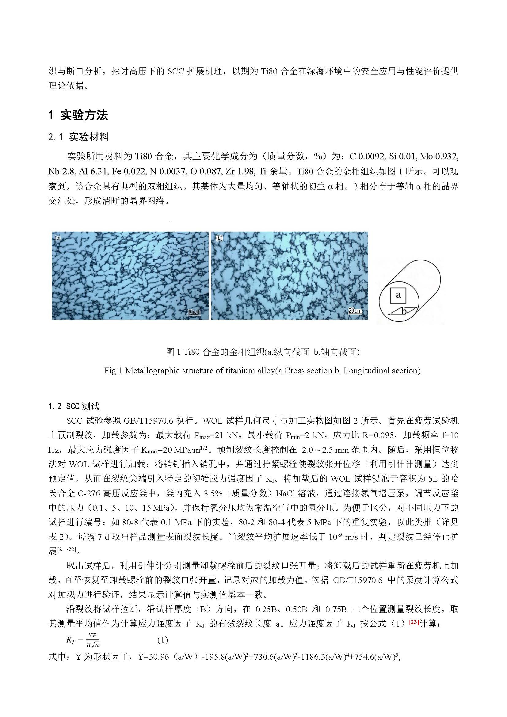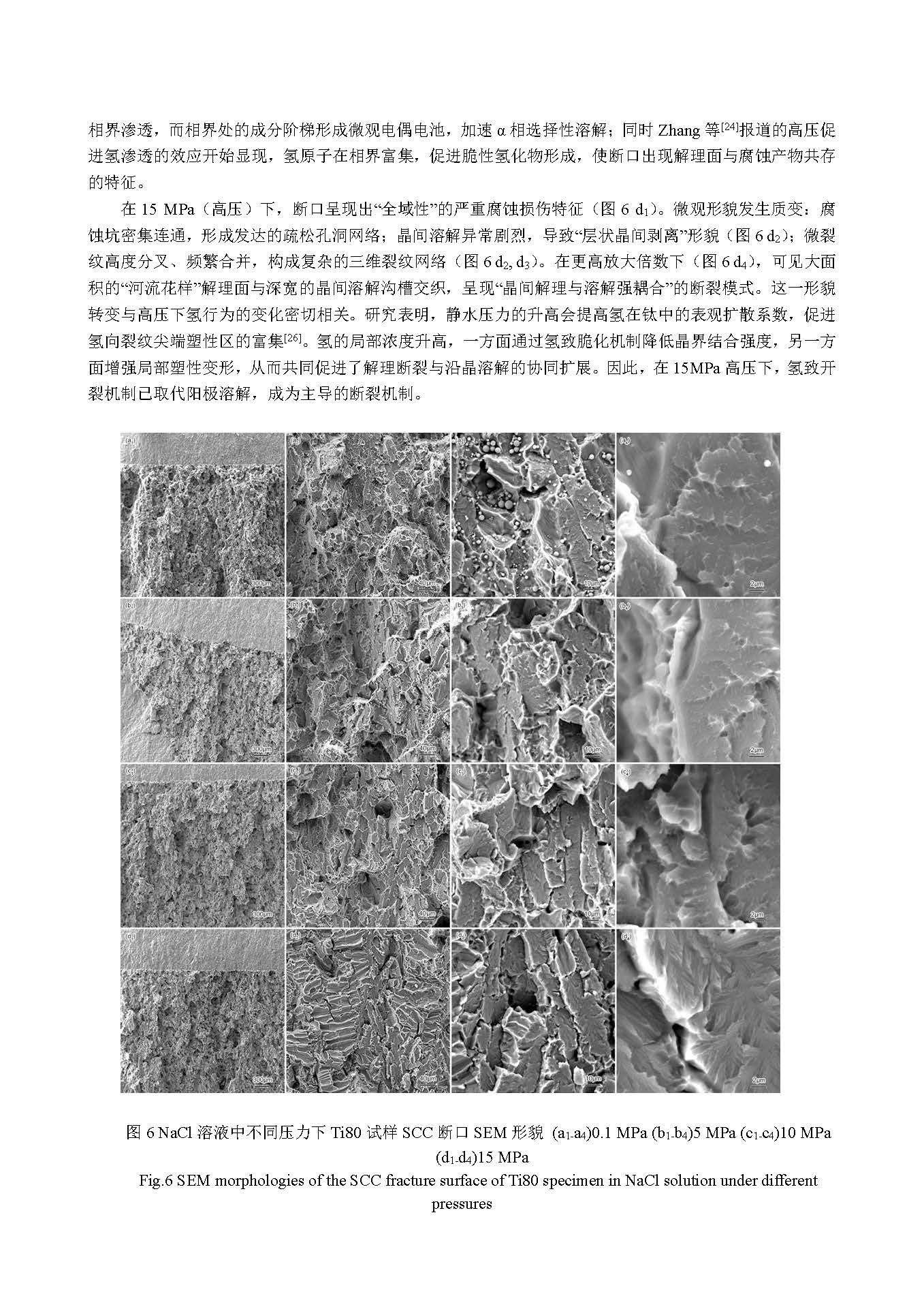 在3.5%NaCl溶液中压力变化对Ti80合金应力腐蚀行为的影响