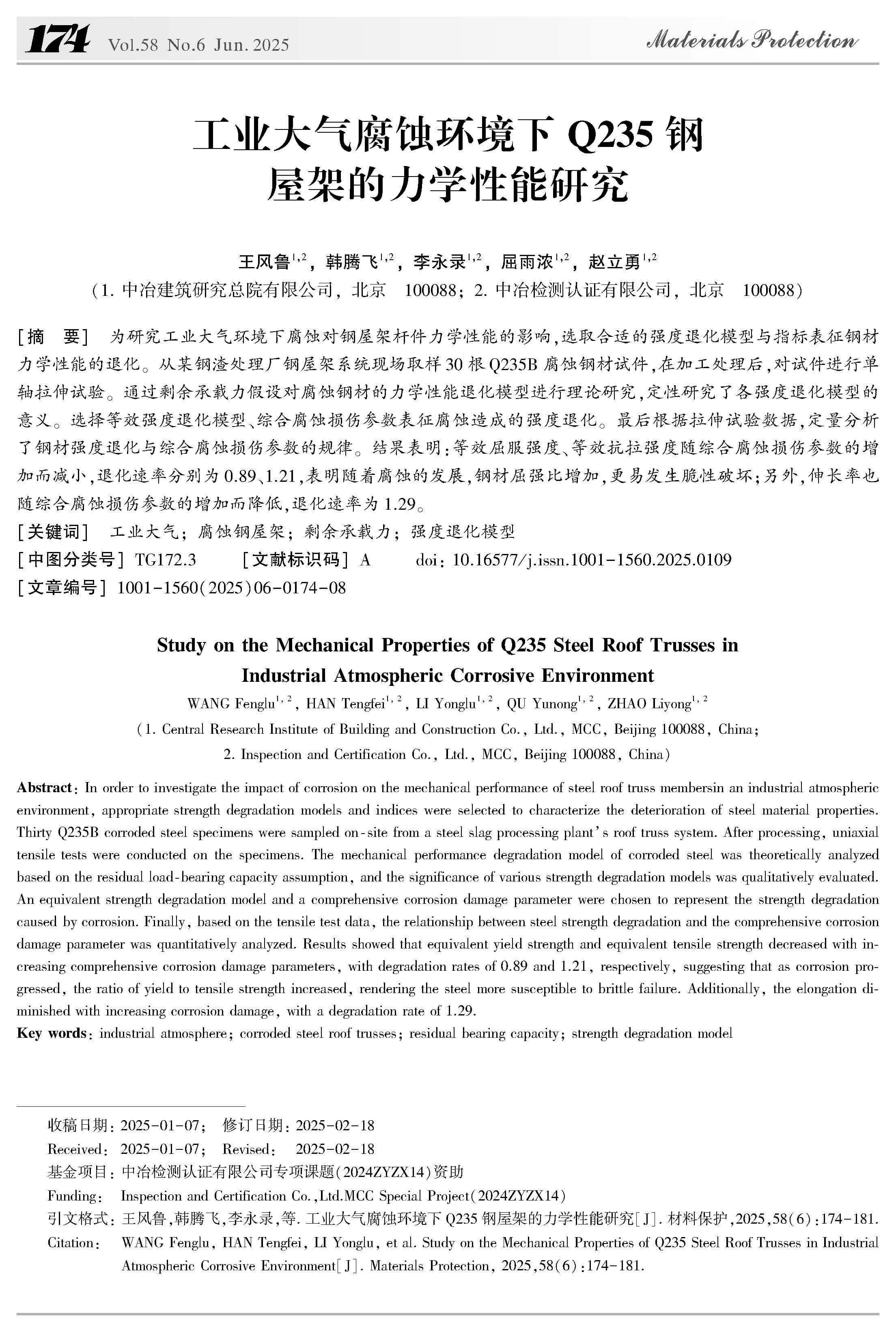 工业大气腐蚀环境下Q235钢屋架的力学性能研究