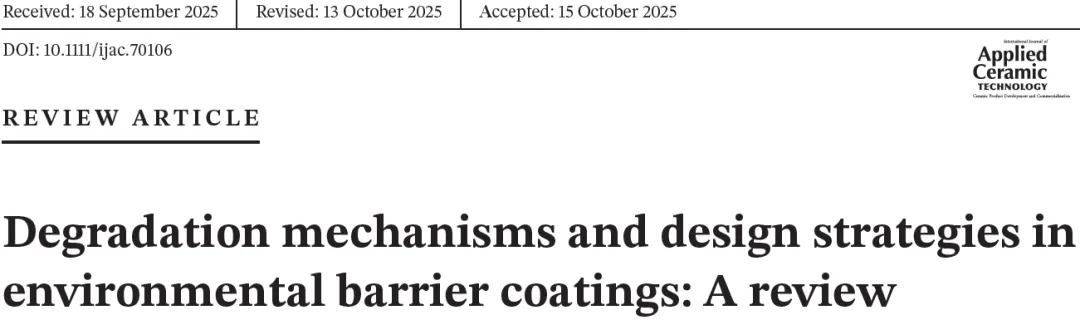 摘要 环境障涂层(EBCs)能够减轻陶瓷基复合材料在严苛环境中,因高温水蒸气、熔盐和腐蚀性气体导致的退化,从而延长部件的使用寿命。本综述全面分析了支配EBC失效的退化机制,包括氧化、挥发、钙镁铝硅酸盐(CMAS)攻击、蒸汽腐蚀和热冲击。为奠定基础,文章首先概述了EBC的材料、加工技术和关键性能指标。随后详细探讨了在服役条件下的相稳定性、热学和化学相容性、断裂阻力以及微观结构演变。文章重点强调了沉积方法、涂层结构和界面设计对退化阻抗的影响,阐明了热生长氧化物、稀土硅酸盐和多层体系的作用。此外,还讨论了近期取得的进展,如纳米结构涂层、自愈合结构和高熵陶瓷。本综述将当前的知识整合成一个连贯的概念框架,以指导下一代EBC的设计与应用。 |