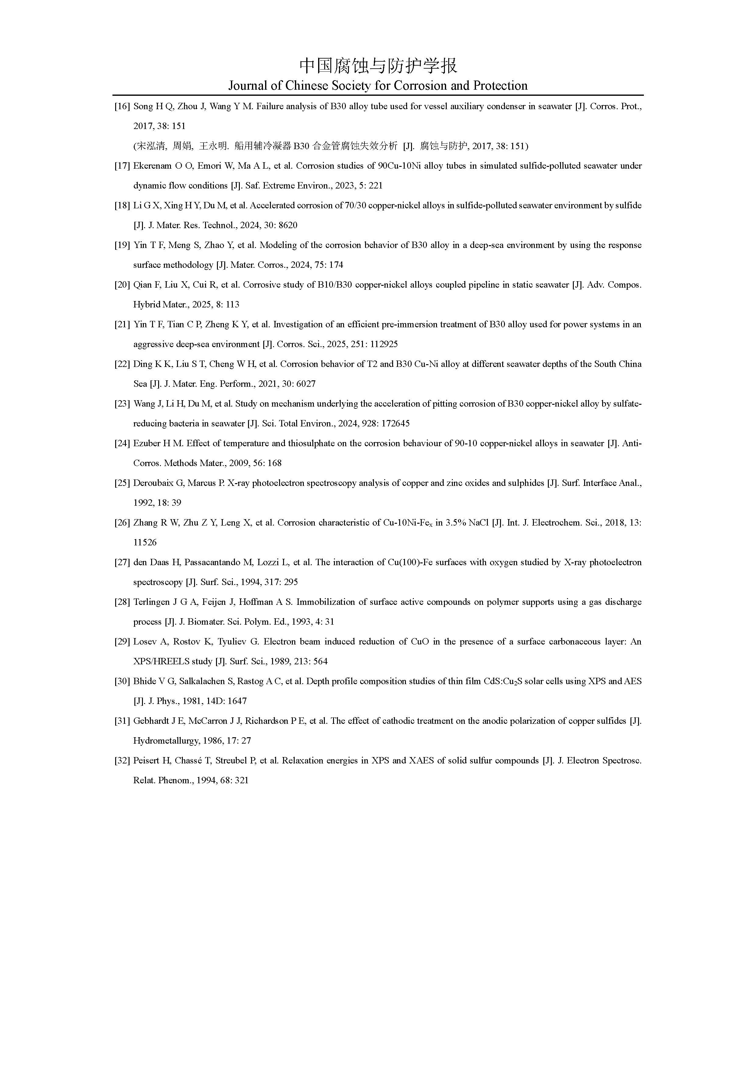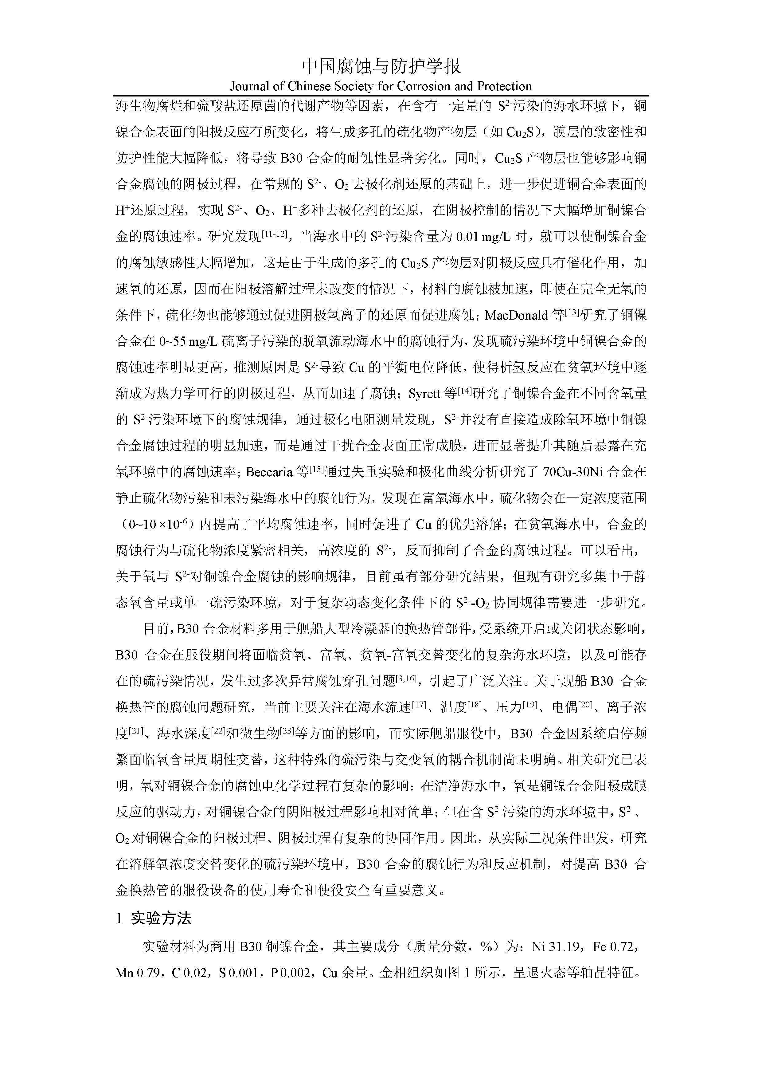 来源:中国腐蚀与防护学报