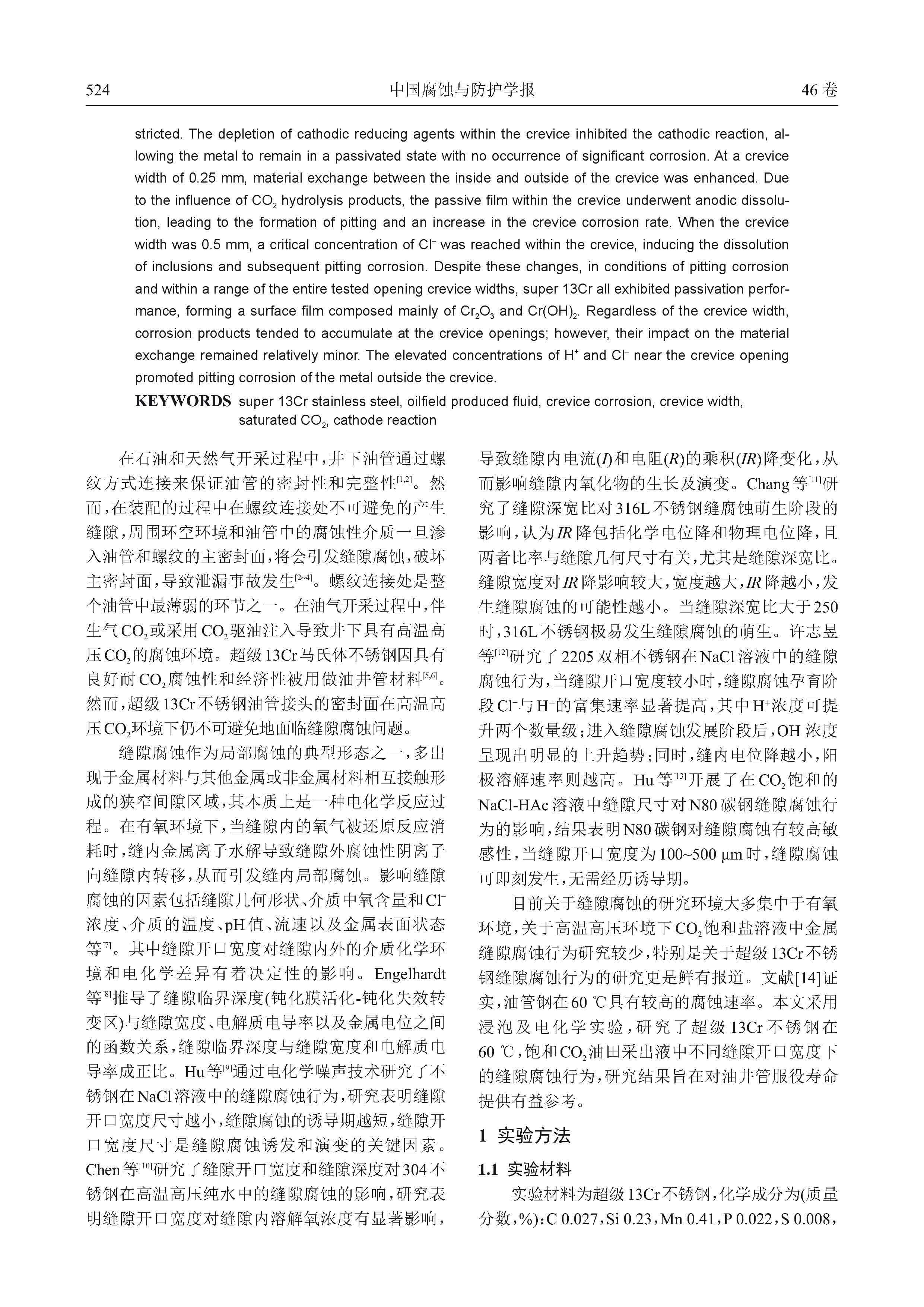 超级13Cr不锈钢在饱和CO2 油田采出液中的缝隙腐蚀行为