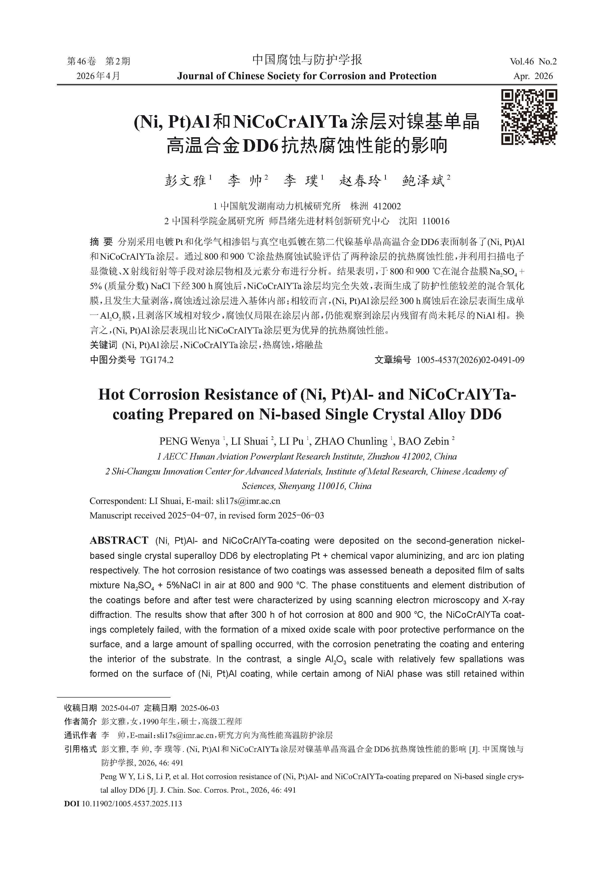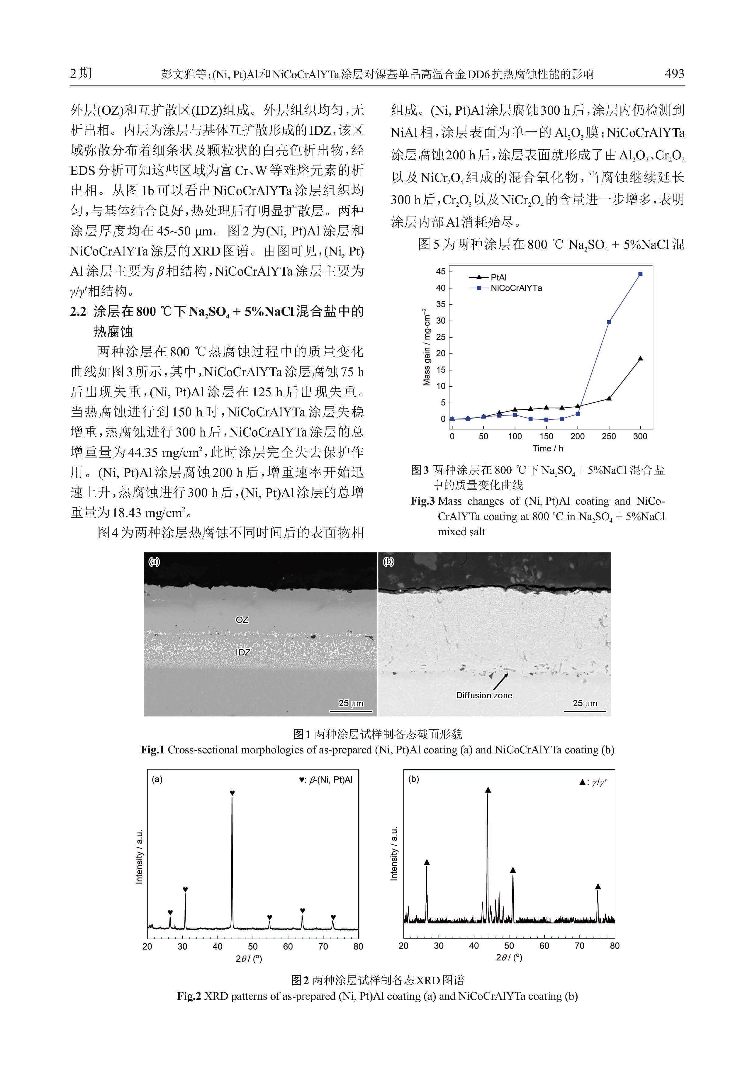 (Ni, Pt)Al和NiCoCrAlYTa涂层对镍基单晶高温合金DD6抗热腐蚀性能的影响