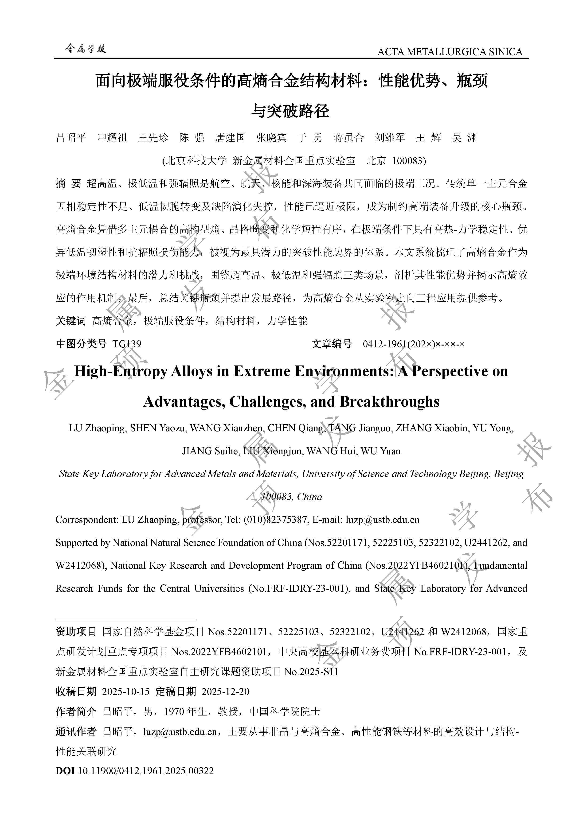 面向极端服役条件的高熵合金结构材料:性能优势、瓶颈与突破路径