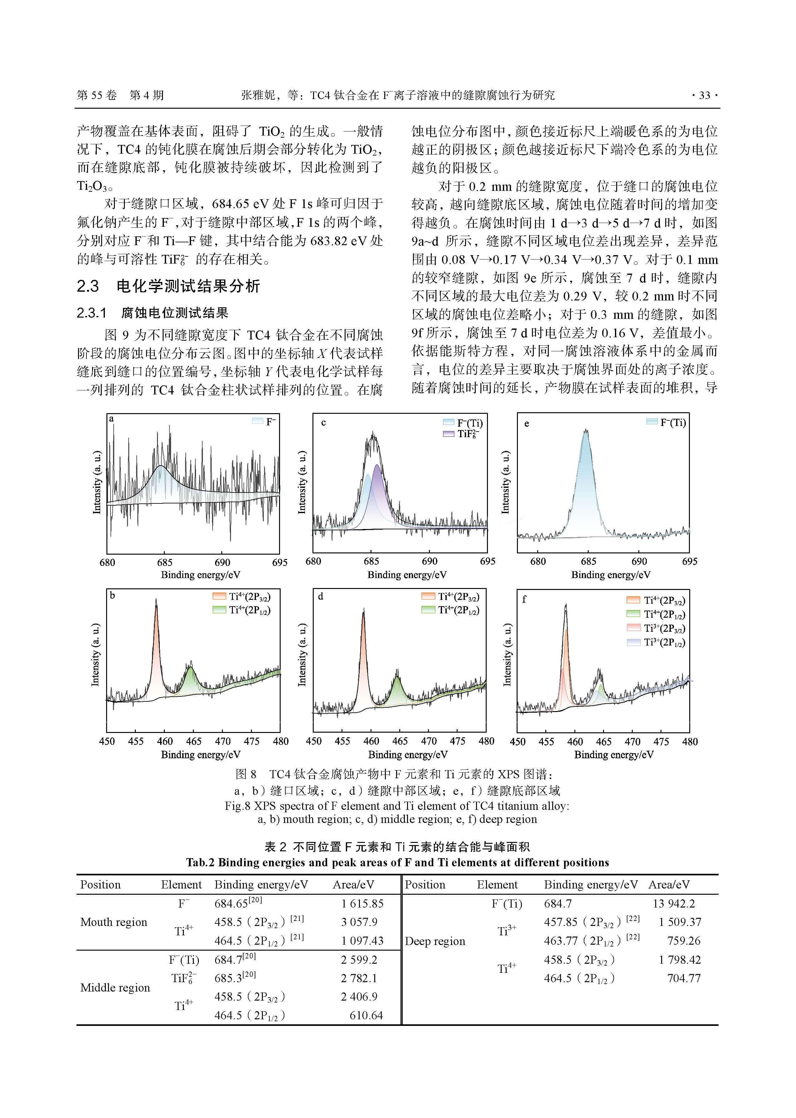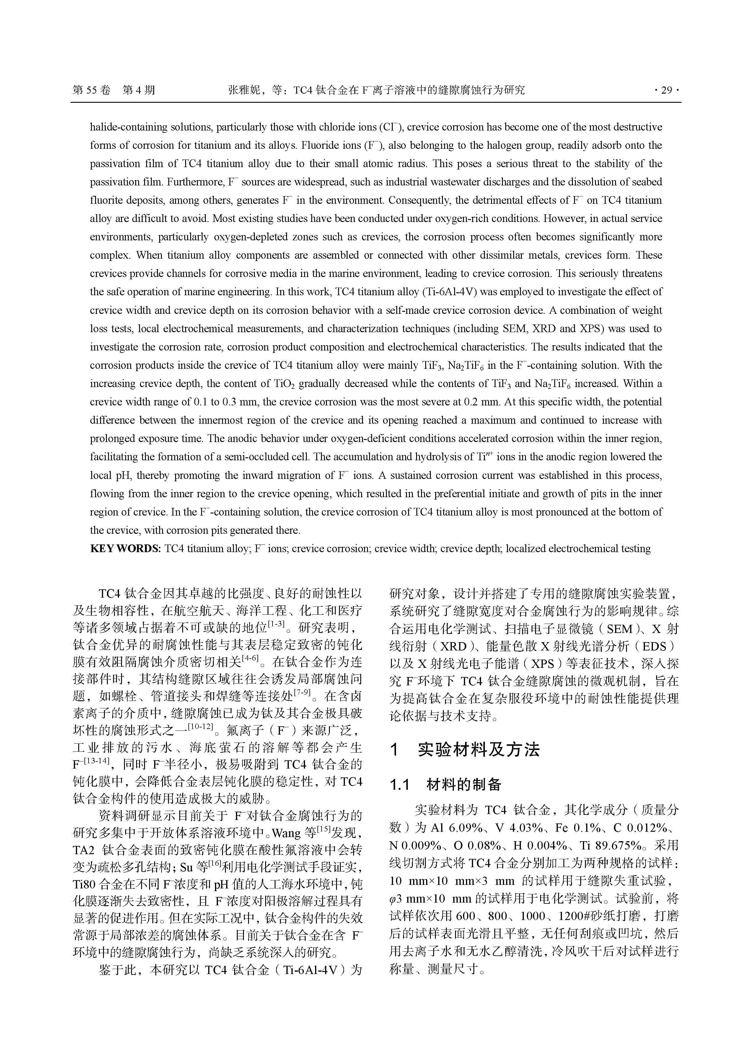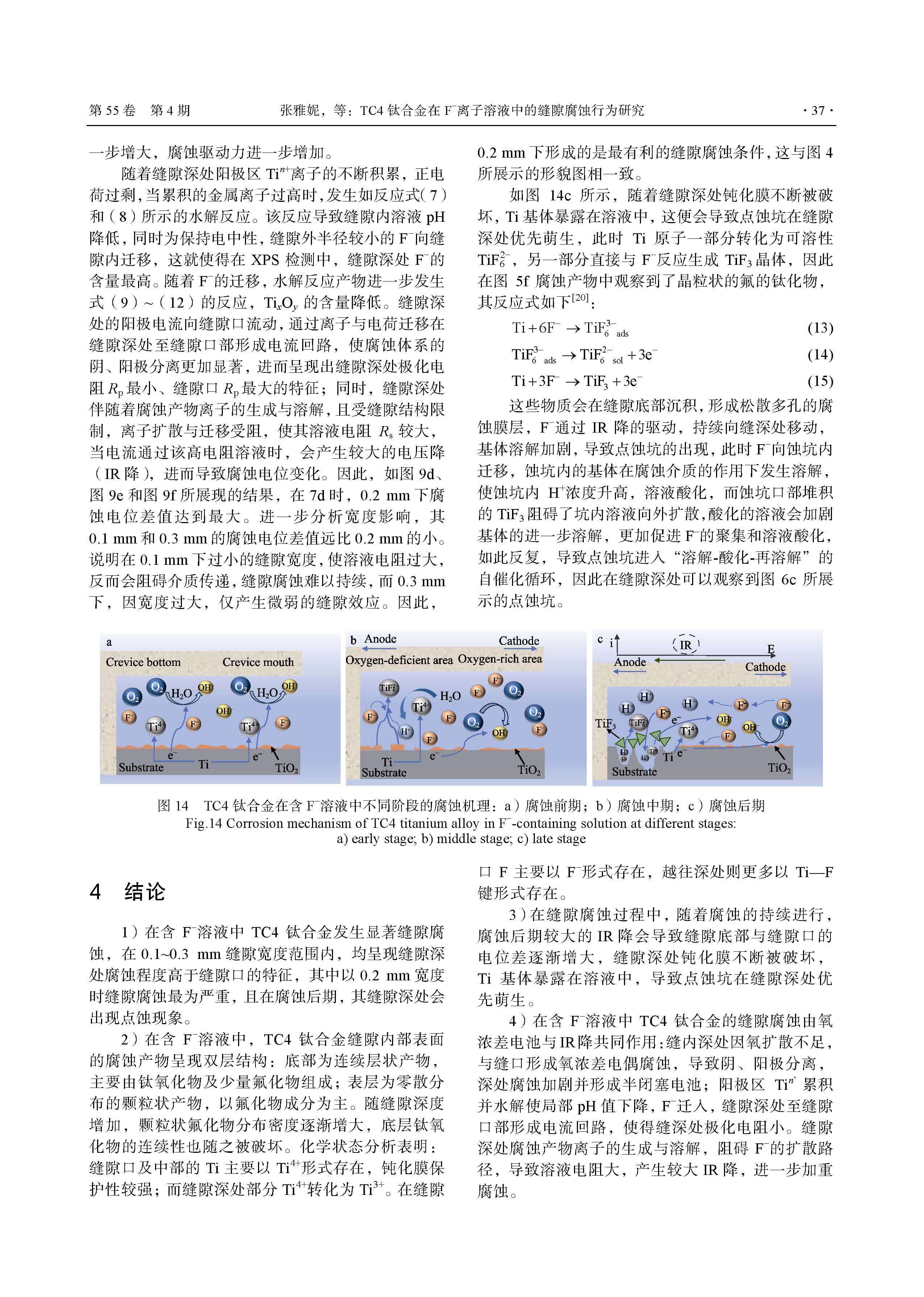 TC4 钛合金在 F− 离子溶液中的缝隙腐蚀行为研究