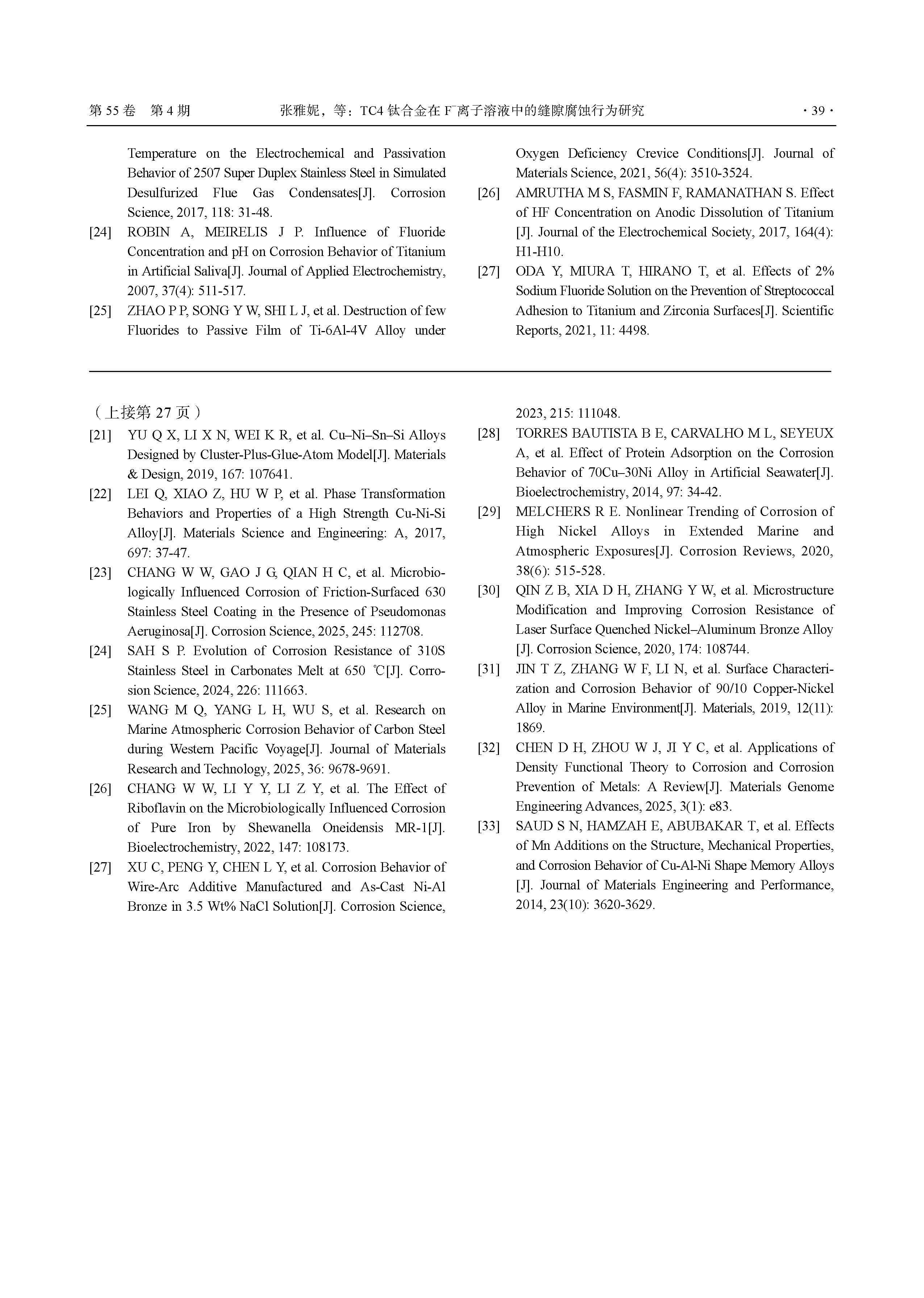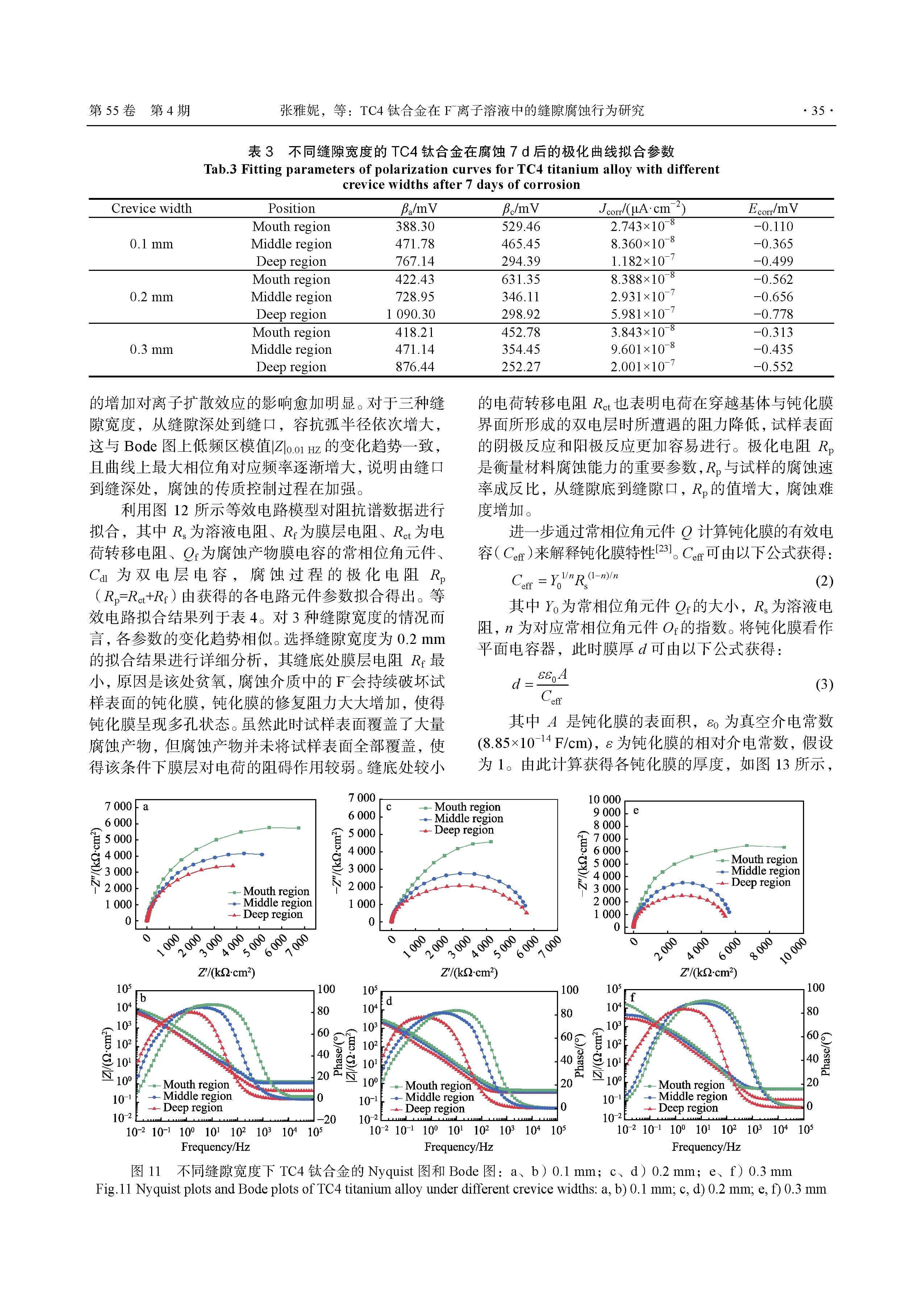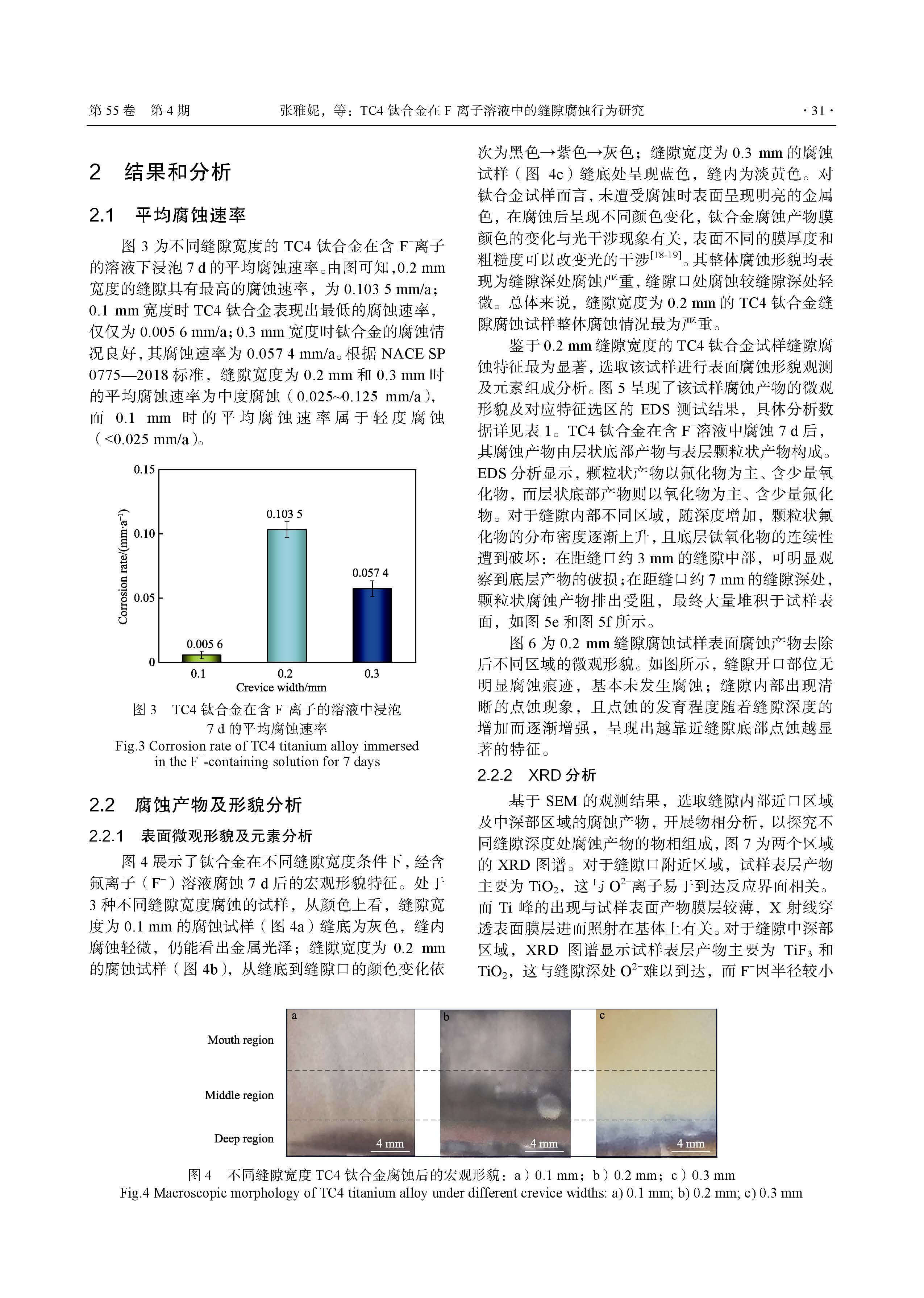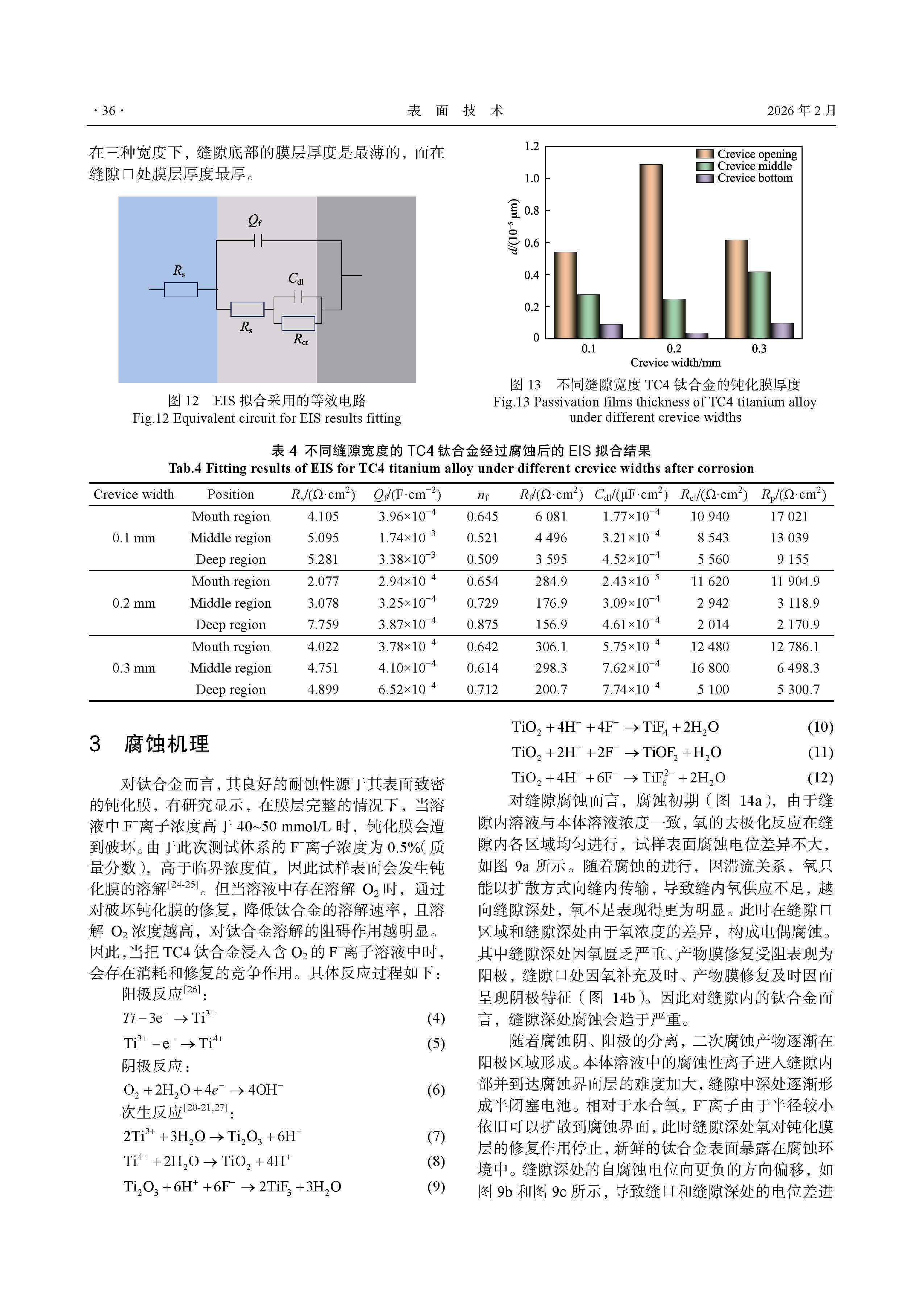 TC4 钛合金在 F− 离子溶液中的缝隙腐蚀行为研究