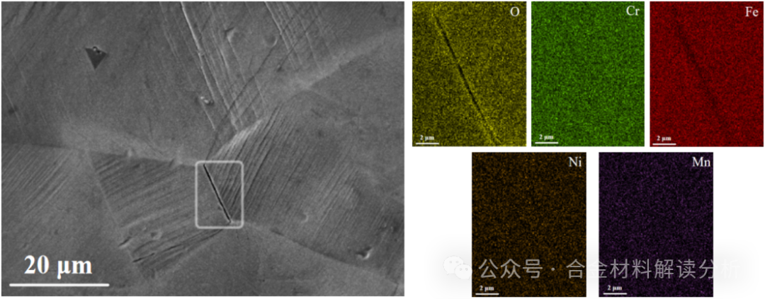 图8:晶间应力腐蚀开裂附近的EDS扫描结果。