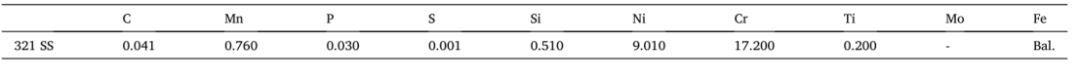 表1:321不锈钢(06Cr18Ni11Ti)材料的成分(wt%)。