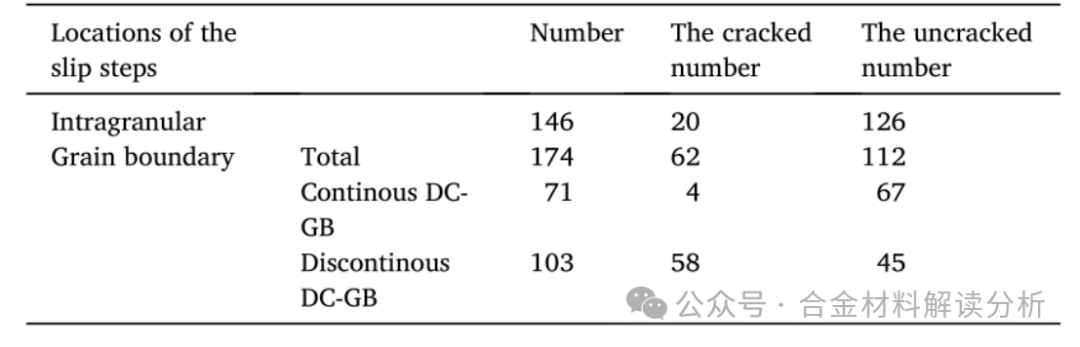 表4:不同位置滑移台阶数量及相应裂纹数量。