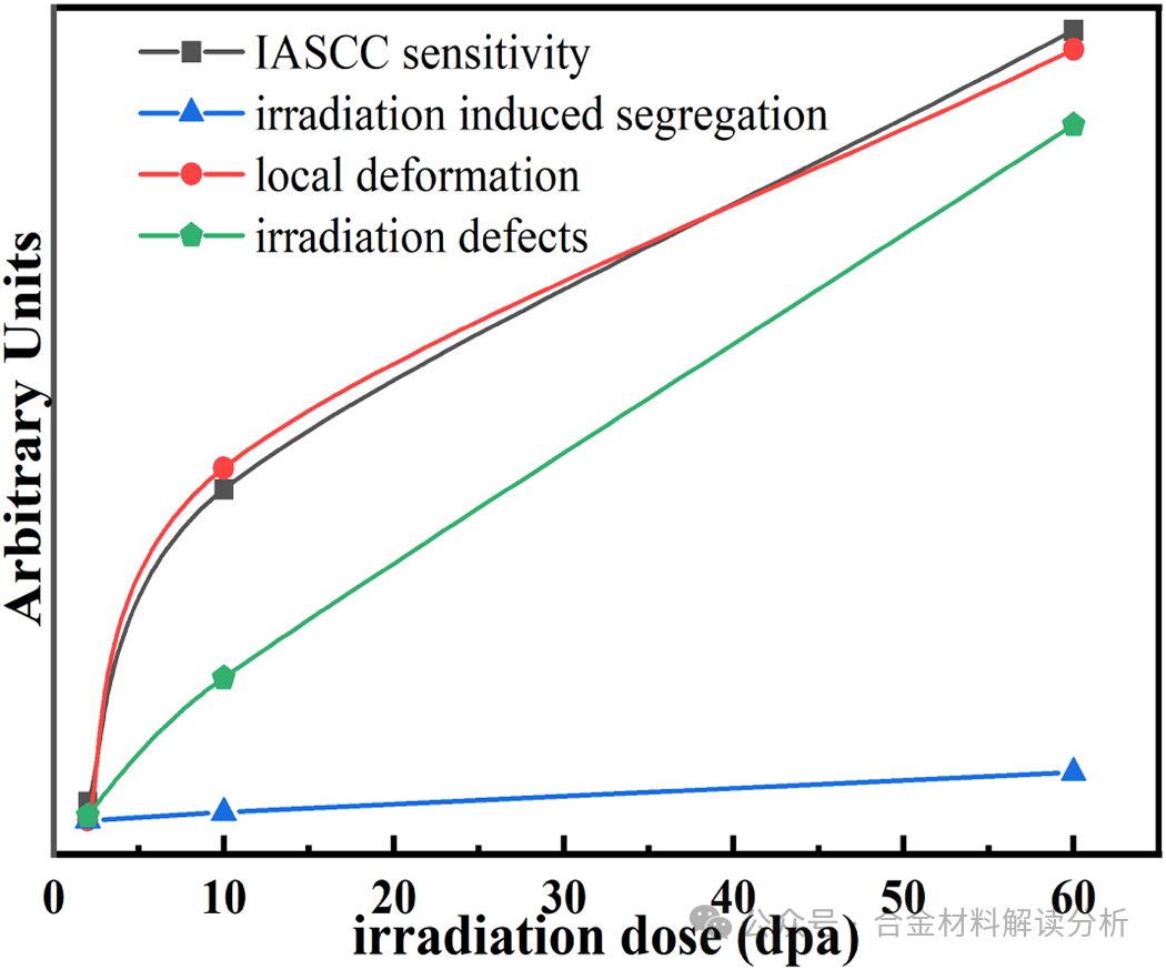 图16:IASCC敏感性随辐照剂量变化的各机制。