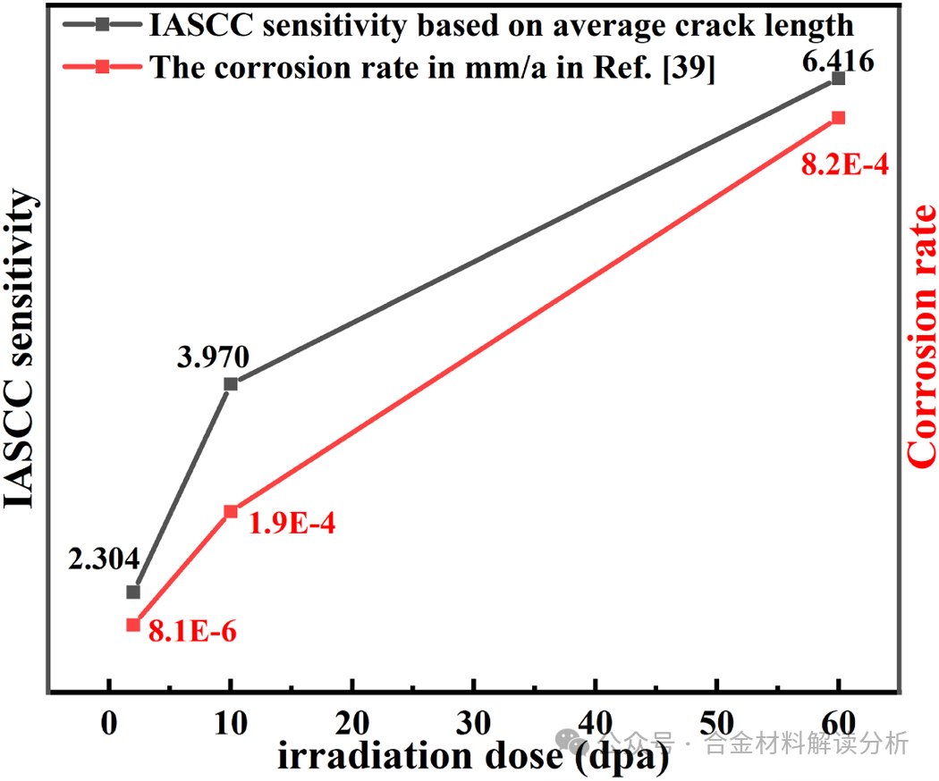 图15:321不锈钢在模拟压水堆一回路水中IASCC敏感性及基本腐蚀性能随剂量的变化。