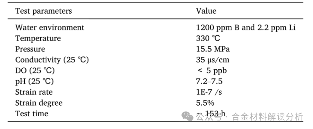 表3:慢应变速率拉伸试验的试验环境和参数。