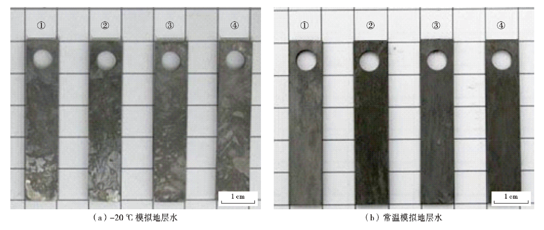 Fig.3 Macro-morphology of tubing steel after 14days of immersion in simulated formation water at -20℃ and room temperature