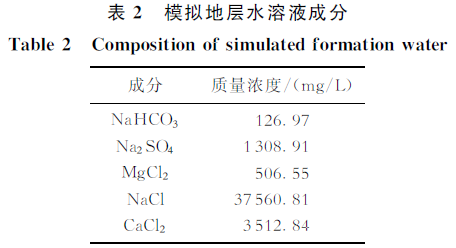 浸泡溶液采用模拟地层水溶液,离子浓度配比方案具体成分见表2。为了保持充足的CO2环境,实验前向溶液中持续通入5 h的CO2。
