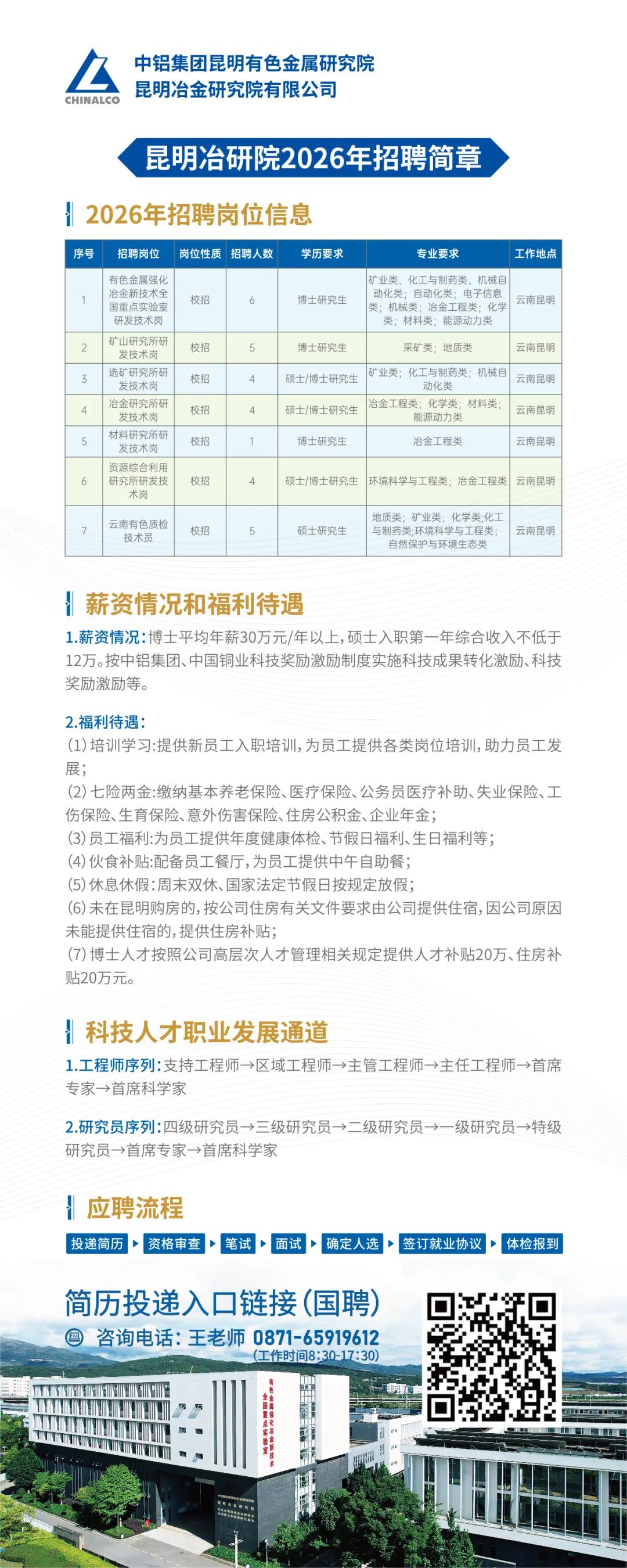 【招聘】年薪30万!昆明冶研院2026年招聘材料类毕业生