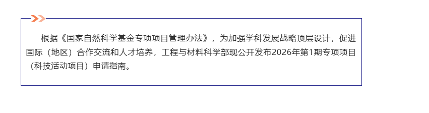 国家自然科学基金委员会工程与材料科学部2026年第1期专项项目(科技活动项目)申请指南