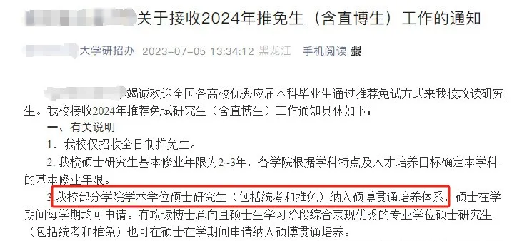对比2024年的文件,该校的表述为“部分学院学术学位硕士研究生(包括统考和推免)纳入硕博贯通培养体系,硕士在学期间每学期均可申请”,可见,今年的覆盖对象已扩大到全校范围。