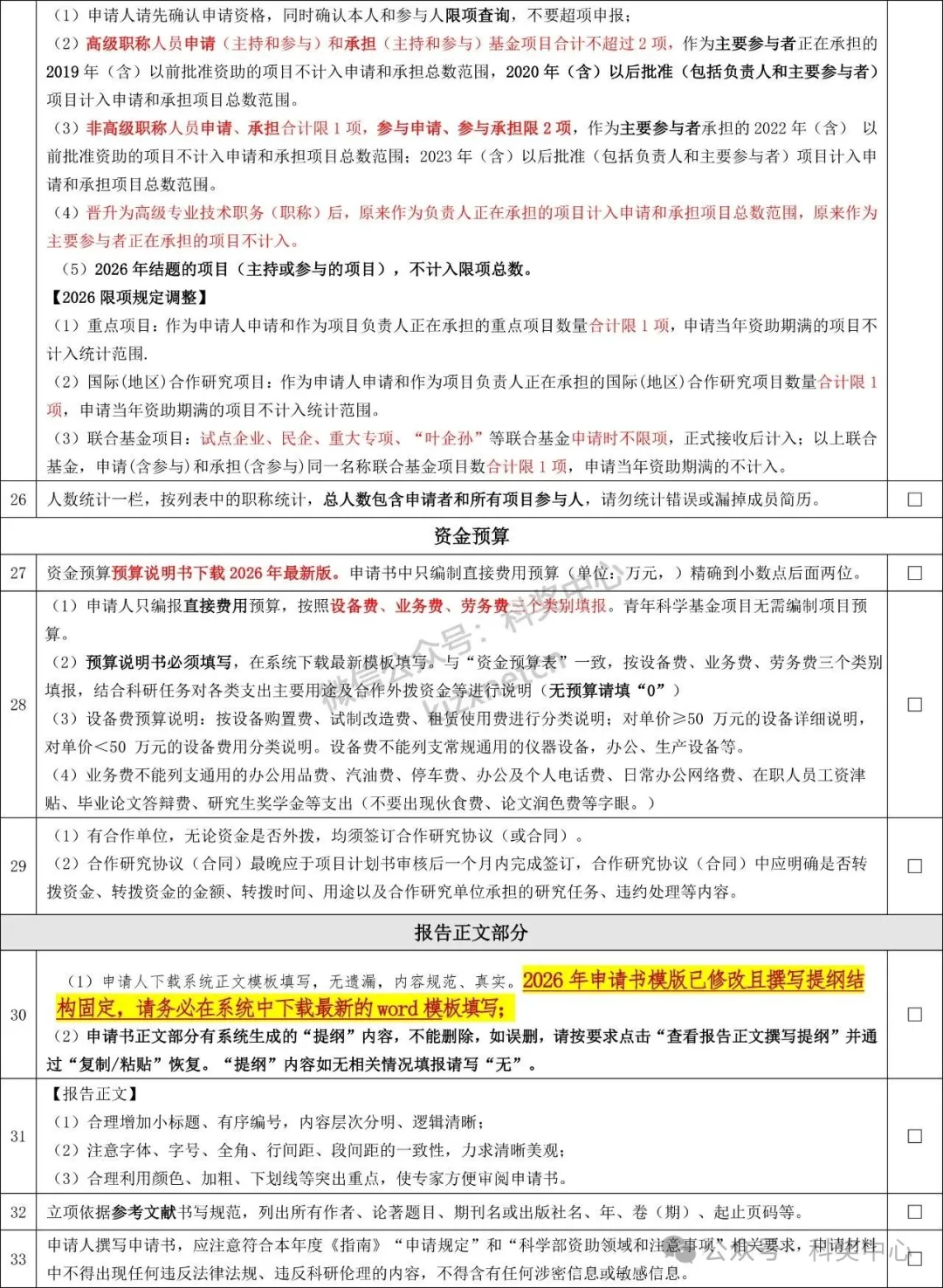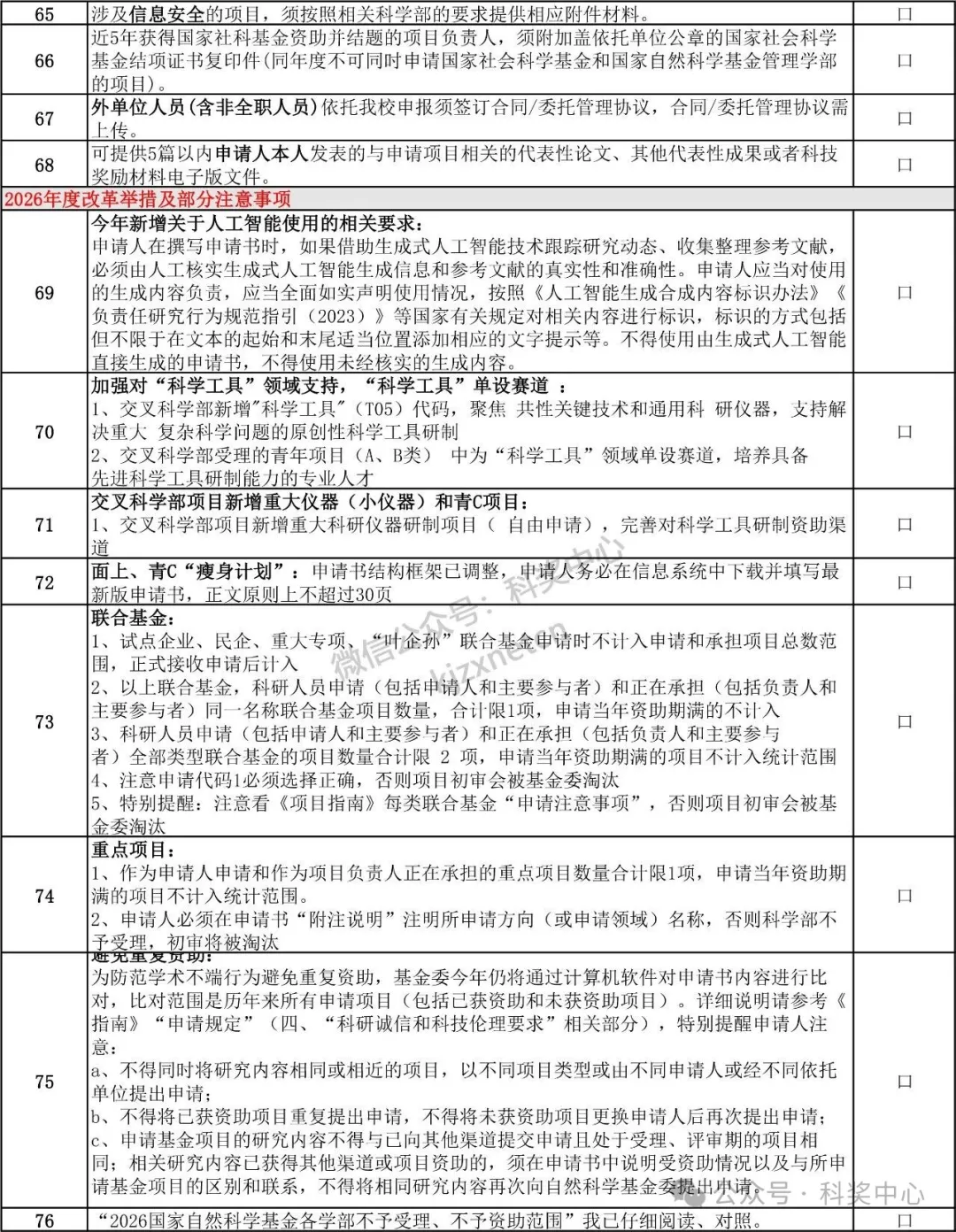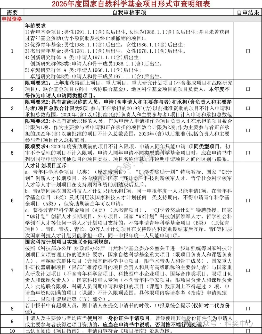 科奖中心从多所高校下载整理了两份2026年度国家自然科学基金项目形式审查自查表,请申请人自行下载打印自查。